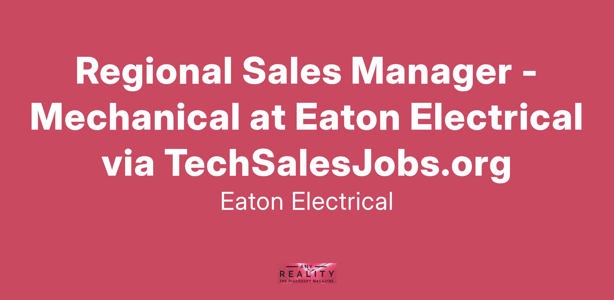 Regional Sales Manager - Mechanical at Eaton Electrical via TechSalesJobs.org