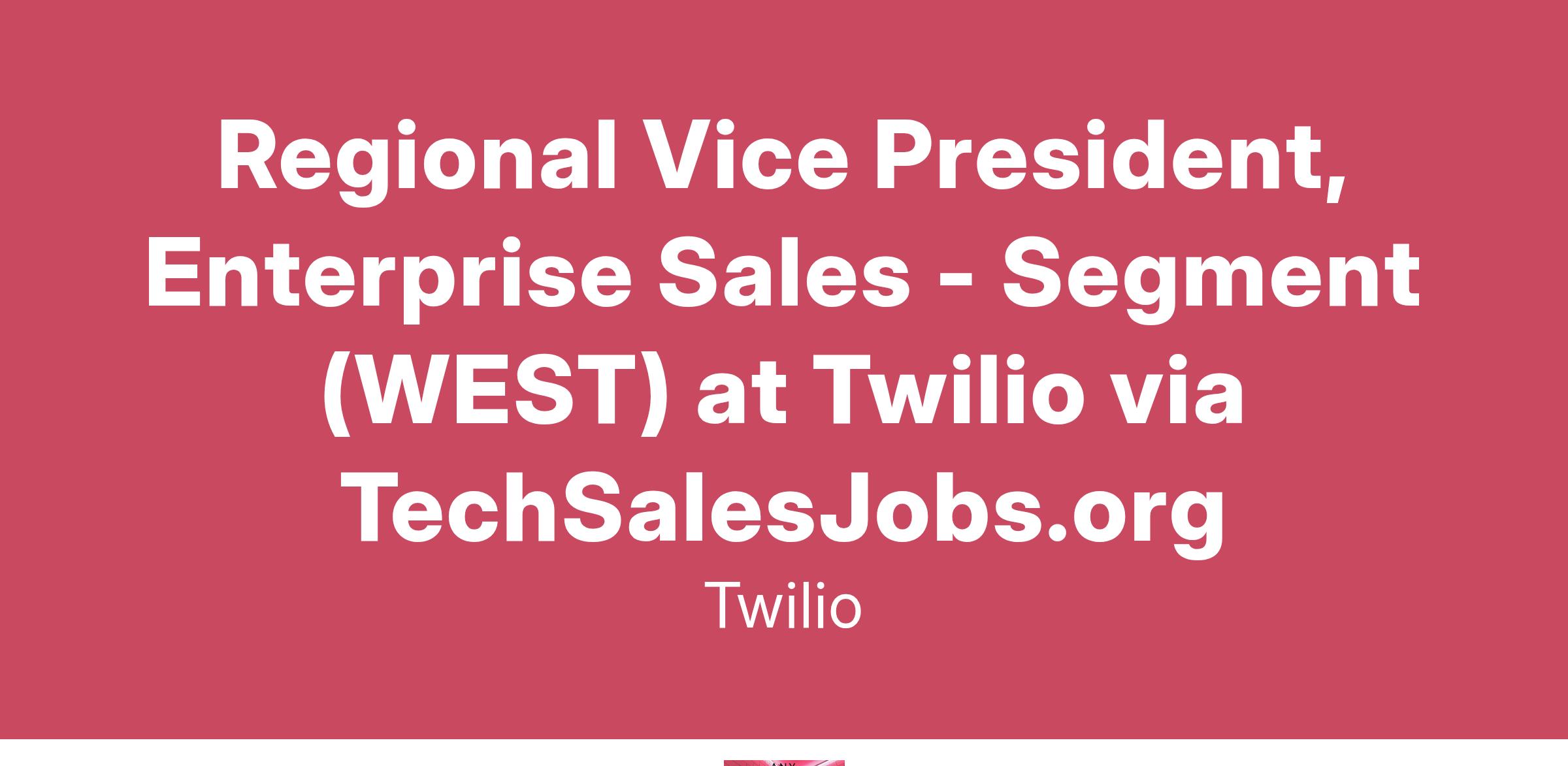 Join the team as our next Regional Vice President, Enterprise Sales on Twilio's Segment West Sales Team!