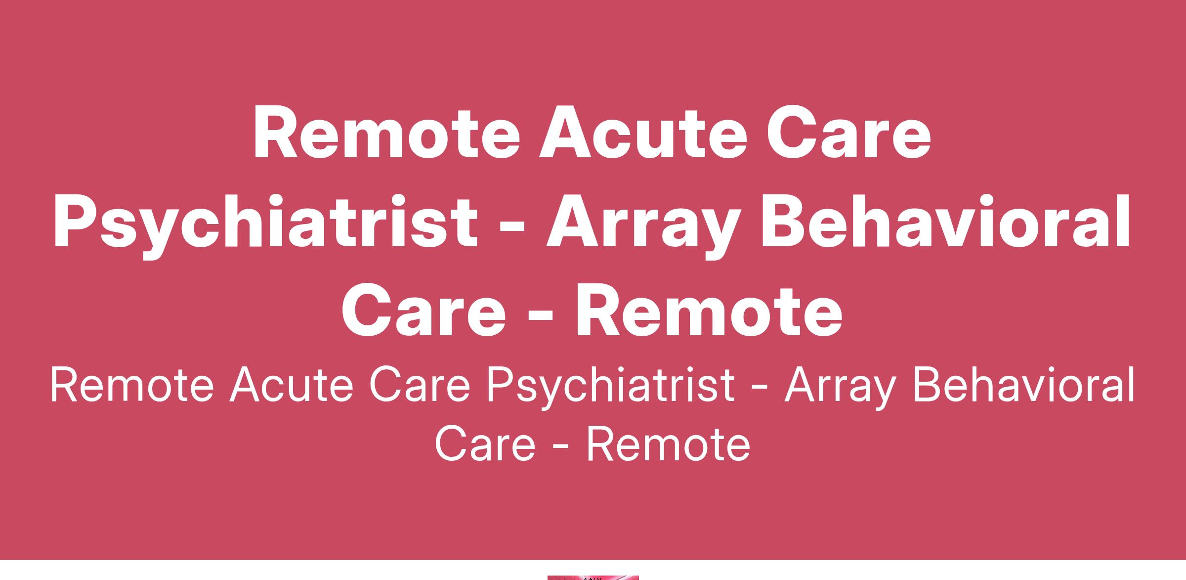 Array Behavioral Care is hiring a full-time, 100% virtual Psychiatrist to provide measurement-based, culturally humble episodic care to patients in acute crisis across various settings and states. You will immerse yourself in the buzz of emergency departments, hospital medical floors or crisis stabilization units from the comfort of your own home. Array Emergency Psychiatrists collaborate with onsite professionals to determine a timely disposition and use evidence-based practices to provide care to vulnerable individuals experiencing mental health crises.