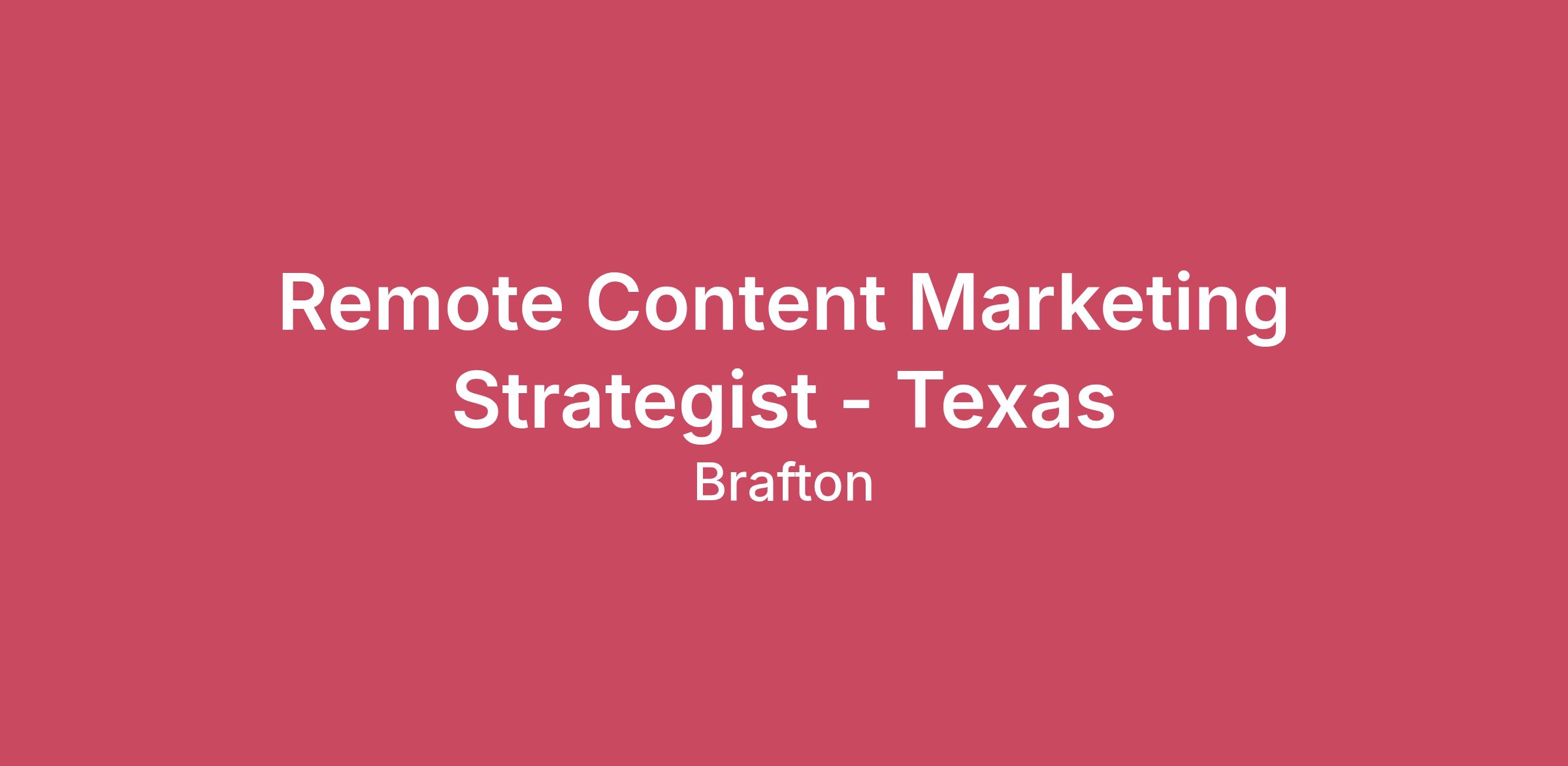 Brafton is one of the world's leading content marketing firms, with offices in Boston, London, Toronto and Sydney. We aspire to continually raise the bar on what people consider "marketing content." We create result-focused strategies and content to drive SEO, social engagement and leads for our clients. Our teams continuously build expertise across new media formats, including video, blogs, infographics and web design.This is a remote, full-time position open to candidates in Texas.Position Summary:We are looking for an A-Player who is client-focused, self-motivated, digitally-savvy and results-driven. You will primarily focus on four areas: account management, content marketing strategy, revenue retention and growth, and project management. You will consult, strategise and manage the execution and integration of custom content strategies that drive growth for mid -large scale organisations. To demonstrate success you must not only have industry SME but also possess killer organisational skills to manage a wide variety of initiatives. Account Management Our Content Marketing Strategists love account management, building a rapport with clients and truly understanding their business. You view servicing a client portfolio of 20-25 clients (mid-large in a wide variety of industries) as an exciting challenge! You will demonstrate the success of your strategies through ROI reporting and delivery against client objectives.Content Strategy As a strategist, you will consult, develop and maintain strong, multi-faceted content marketing strategies for clients which include research, interpretation and presentation of statistical reporting.Revenue Retention and Growth Success Success is measured by the retention of clients in your portfolio and growing your account base. Must be able to sell the next strategy and create statements of work that help clients meet their business objectives. Must be commercially savvy; understanding of how businesses make decisions and make money in a competitive market.Project Management Bring your ideas to life working with Brafton’s content creation teams (editorial, graphics, video, and social media) web integration team and clients to create strategies that deliver strong ROI against client objectives.Success is measured by the strength in your portfolio and rewarded through incentive opportunities (client retention/organic growth). While this is primarily a remote role, some travel to visit clients in person may be required.Skills & Qualifications:You need a relevant Bachelor’s degree with a minimum of 3-5 years proven experience in Account Management and/or experience and demonstrated knowledge/expertise in latest content marketing/SEO strategy trends. Not only do you know what makes for a great content strategy but you have a keen eye for displaying content optimising UX best practices. Phenomenal communication skills. Finally, one of your greatest strengths is your high attention to detail and organisational skills that allow you to be a rock star at managing multiple projects at a given time in a fast paced environment.Key Skills Needed:Account Management, Content Marketing, Digital Strategy, SEO Strategy, Sales, Google Analytics, Google Adwords, Web Analytics, Social Media Strategy, Digital Marketing Consulting, Project Management\n\n$60,000 - $70,000 a yearOn-target earnings.\nBenefits Include: Competitive incentive plan, Health, Dental, Vision, 401(k) with match, remote work perks, and more!EQUAL OPPORTUNITY | E-VERIFY: Brafton is an Equal Opportunity employer. In addition to federal law requirements, Brafton complies with applicable state and local laws governing nondiscrimination in employment in every location in which the company has facilities. This applies to all terms and conditions of employment, including recruiting, hiring, placement, promotion, termination, layoff, transfers, leave of absence, compensation and training. Applicants for employment in the US must have work authorization that does not now or in the future require sponsorship of a visa for employment authorization in the United States and with Brafton (i.e., H1-B visa, F-1 visa (OPT), TN visa or any other non-immigrant status).