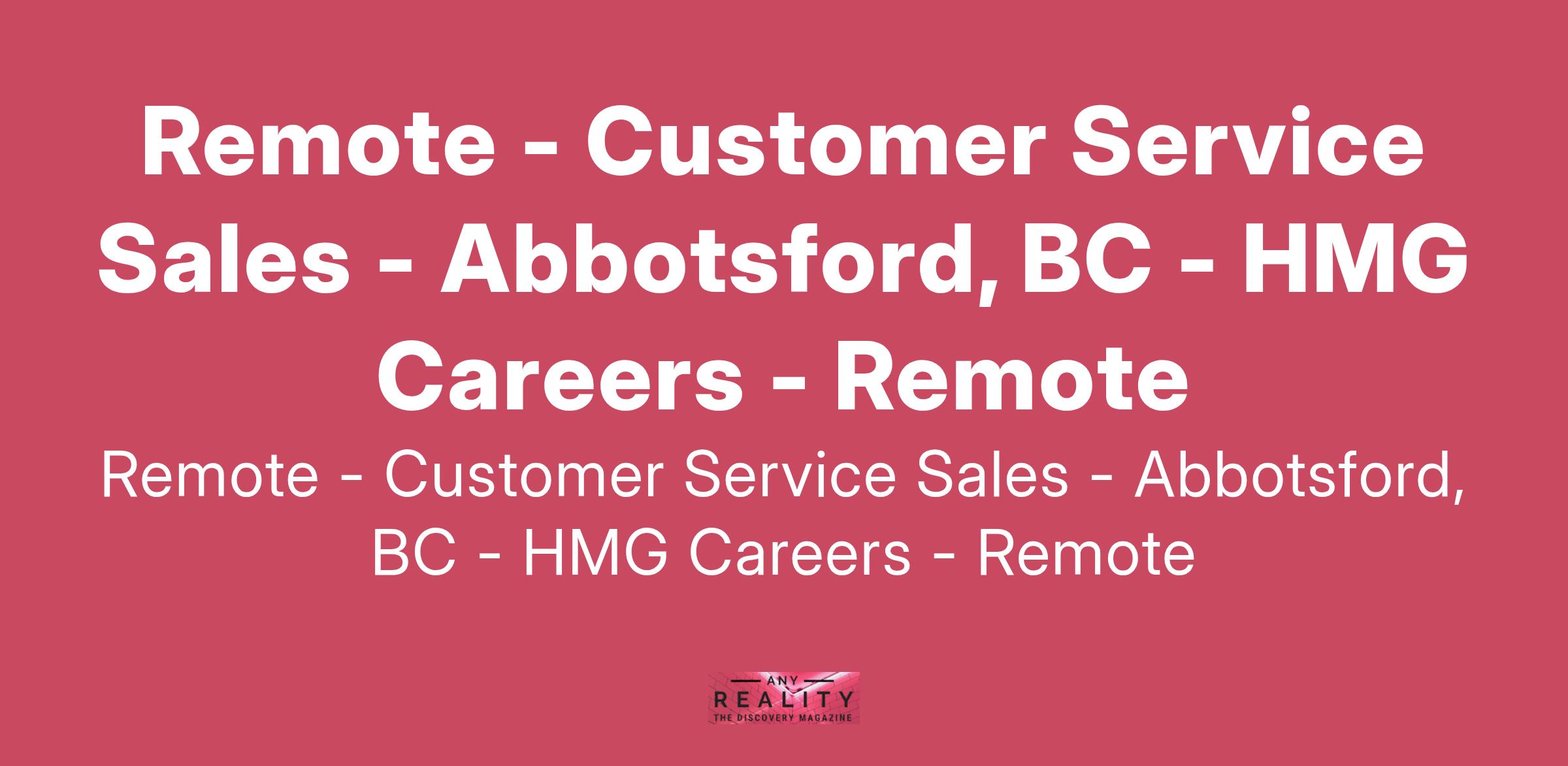 Remote - Customer Service Sales - Abbotsford, BC - HMG Careers - Remote