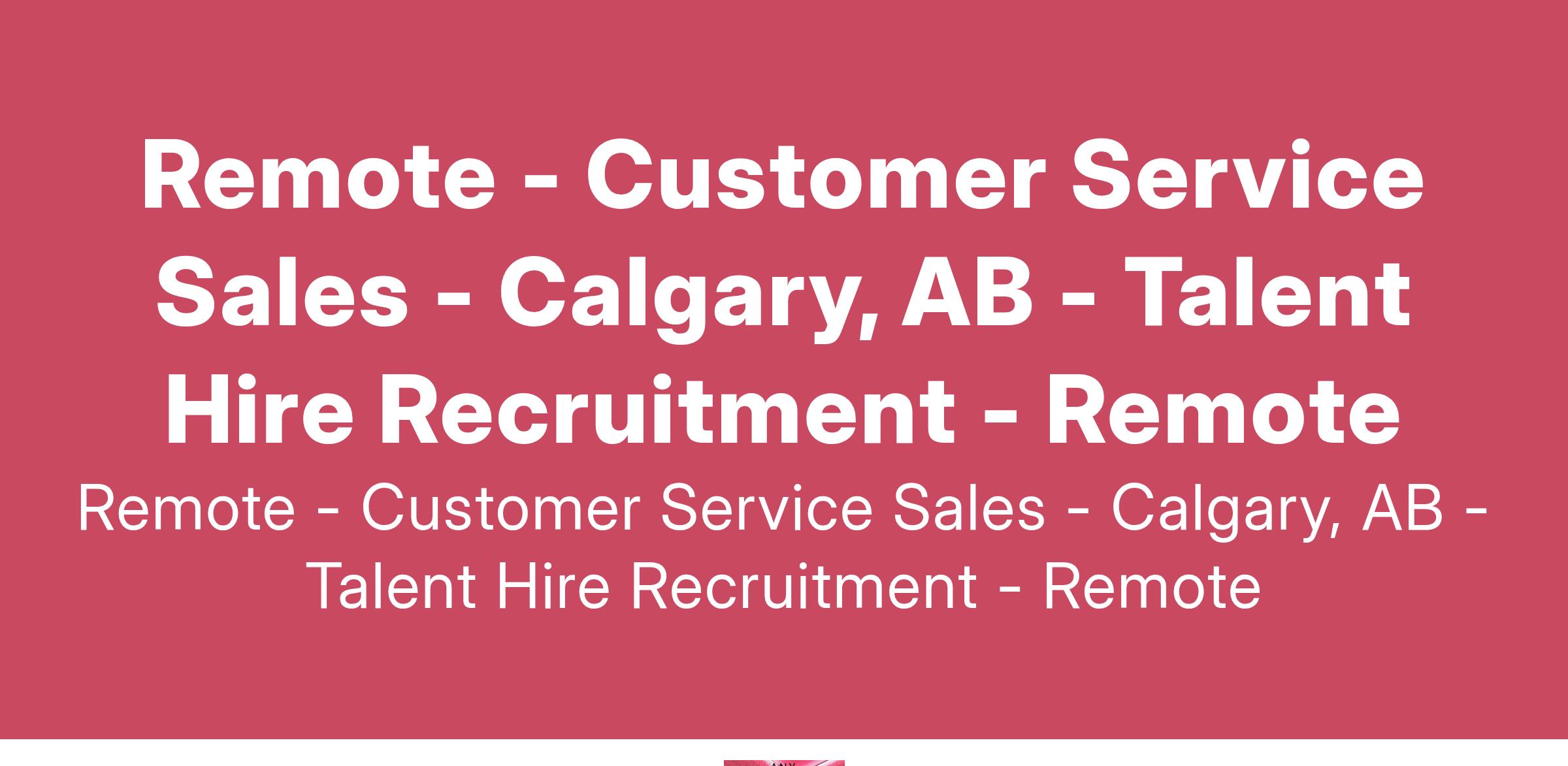 Remote - Customer Service Sales - Calgary, AB - Talent Hire Recruitment - Remote