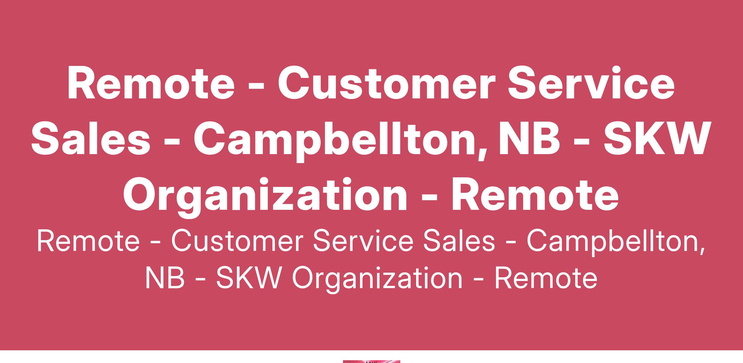 Remote - Customer Service Sales - Campbellton, NB - SKW Organization - Remote