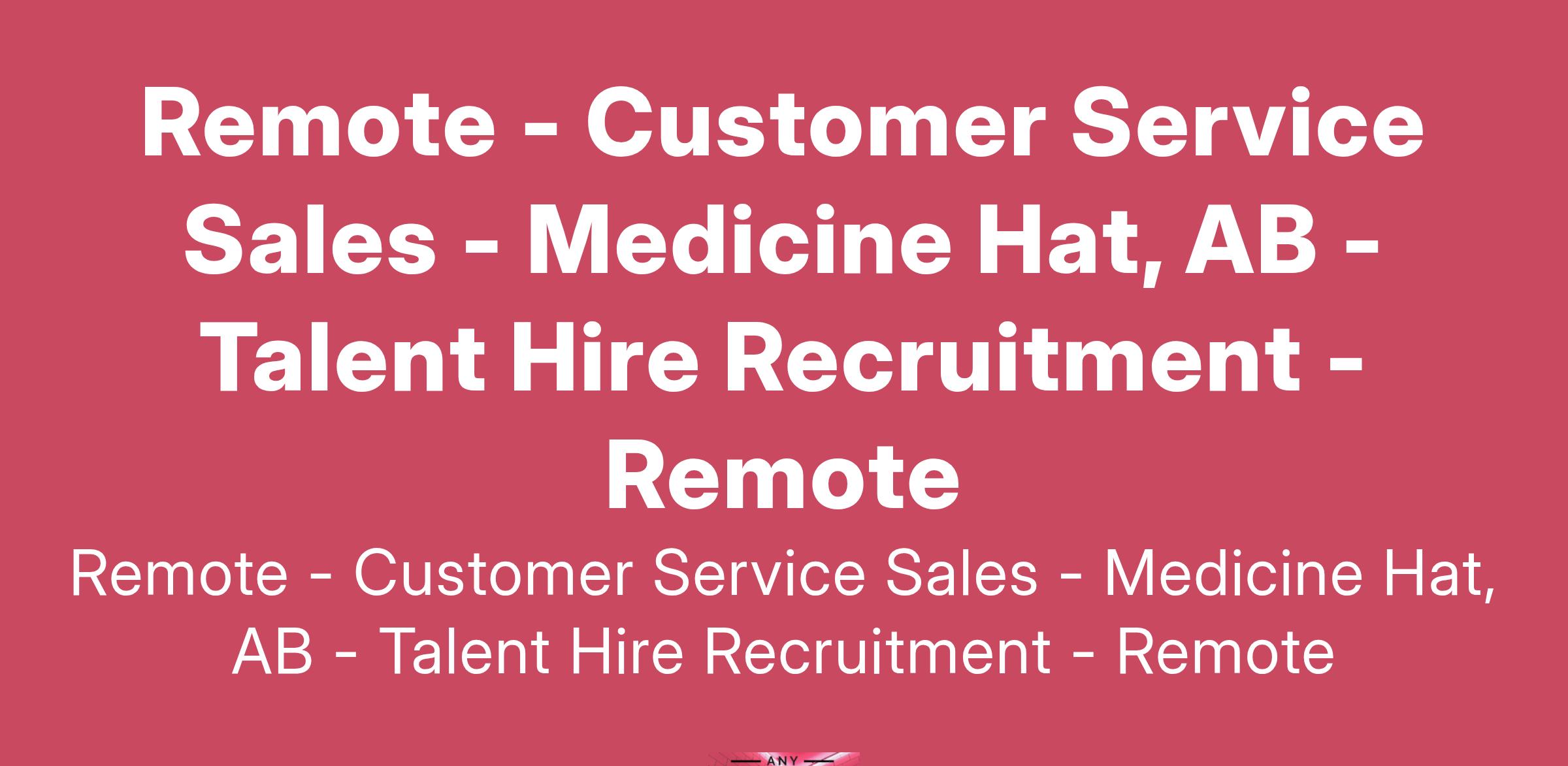 Remote - Customer Service Sales - Medicine Hat, AB - Talent Hire Recruitment - Remote