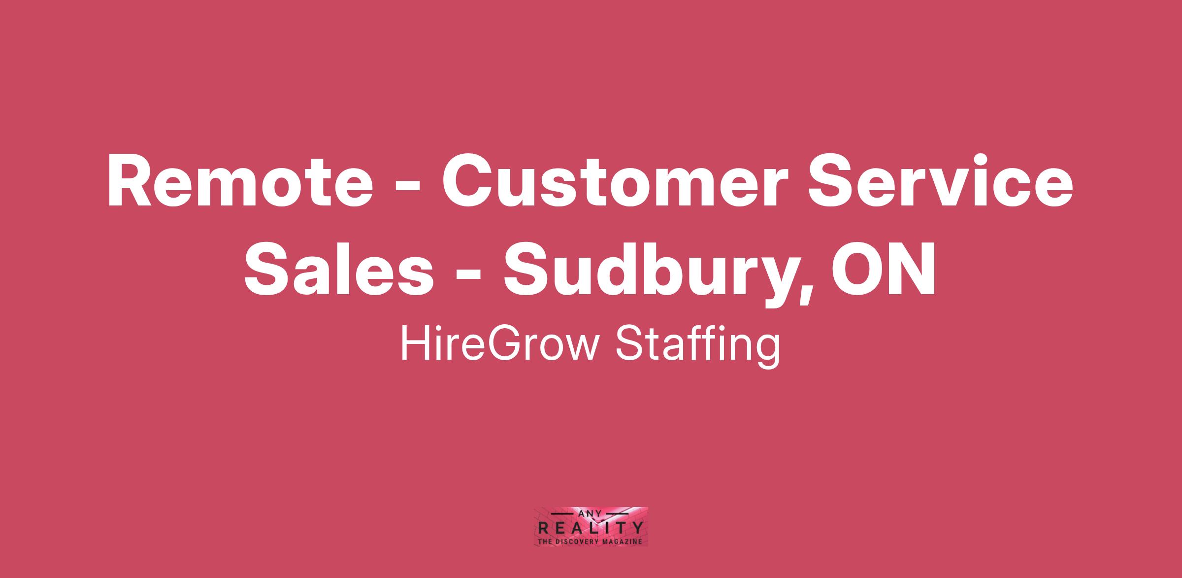 Remote - Customer Service Sales - Sudbury, ON