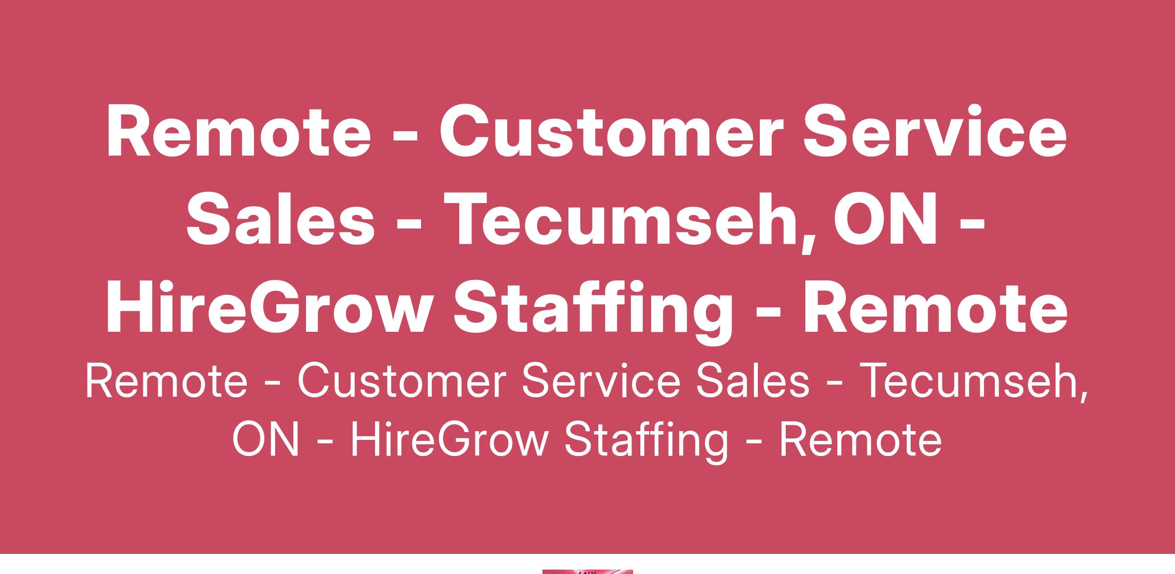 Remote - Customer Service Sales - Tecumseh, ON - HireGrow Staffing - Remote