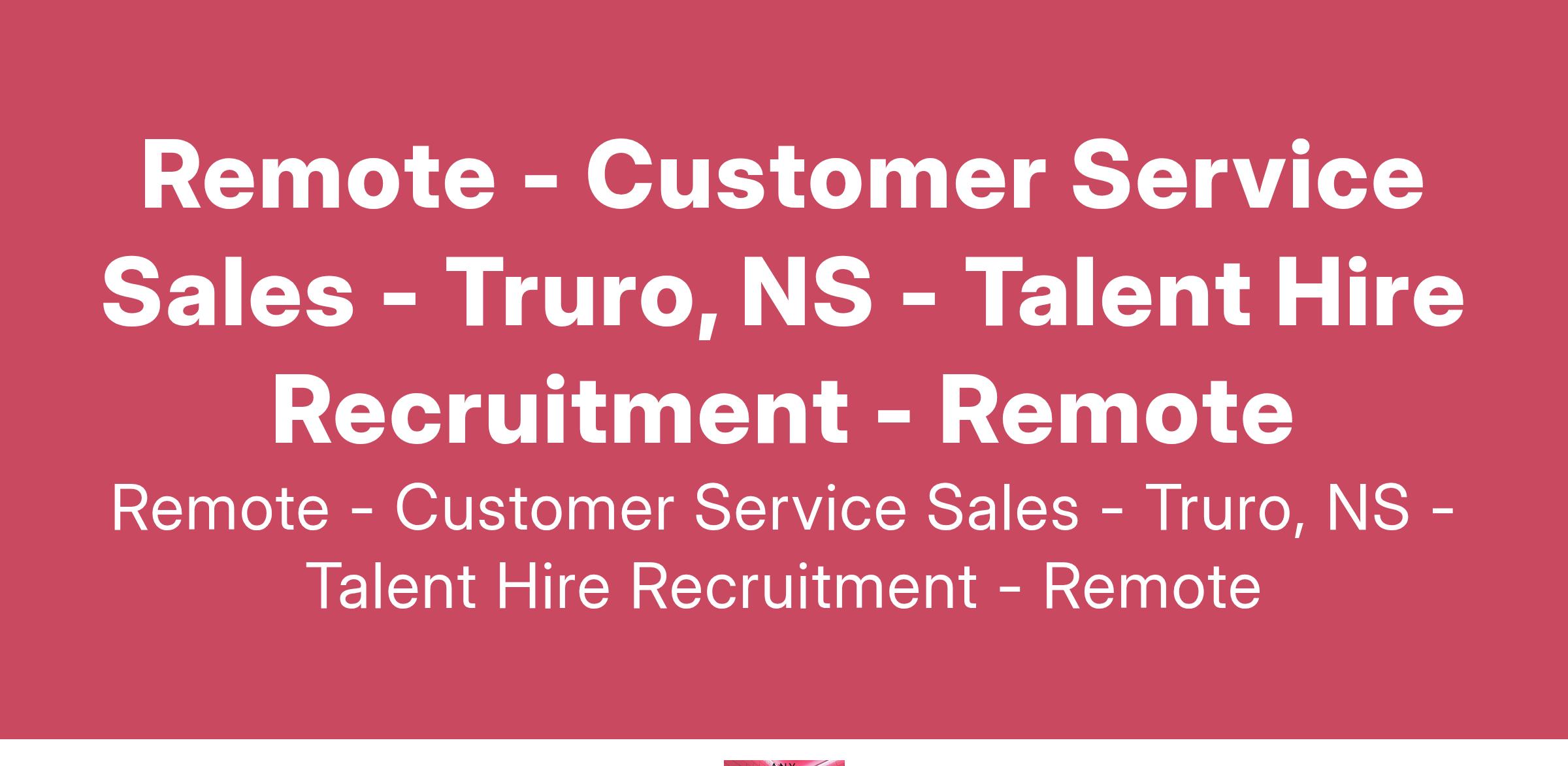 Remote - Customer Service Sales - Truro, NS - Talent Hire Recruitment - Remote