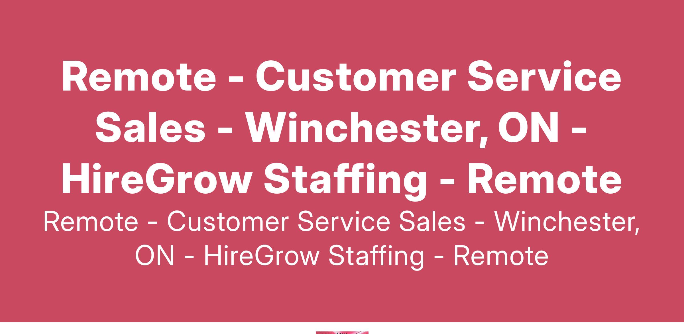Remote - Customer Service Sales - Winchester, ON - HireGrow Staffing - Remote