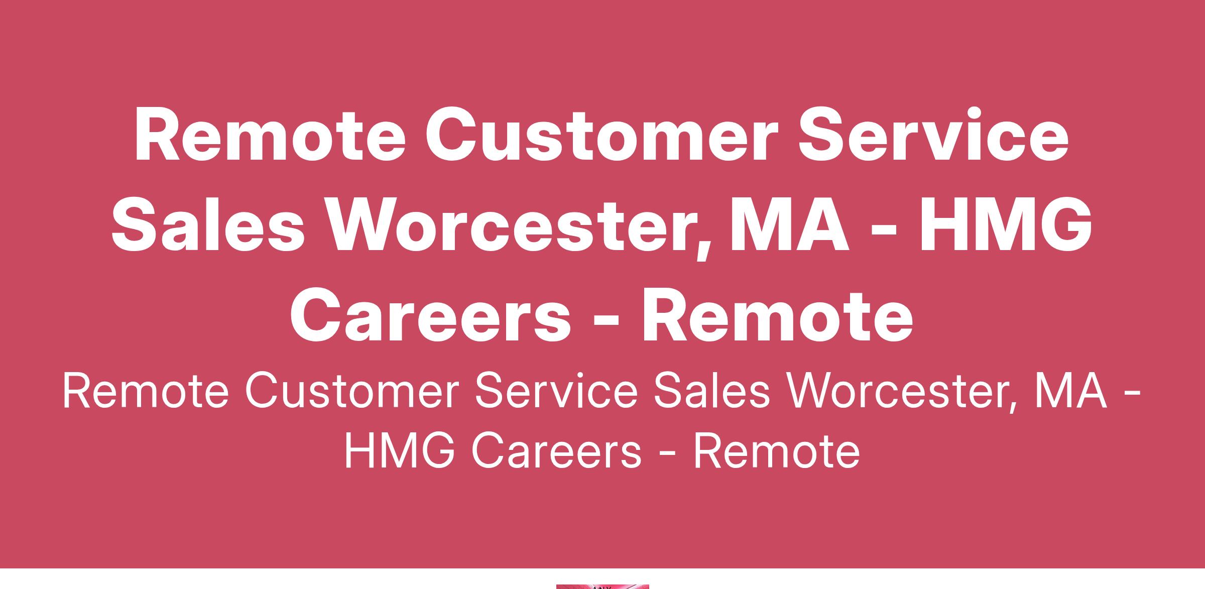 Remote Customer Service Sales Worcester, MA - HMG Careers - Remote