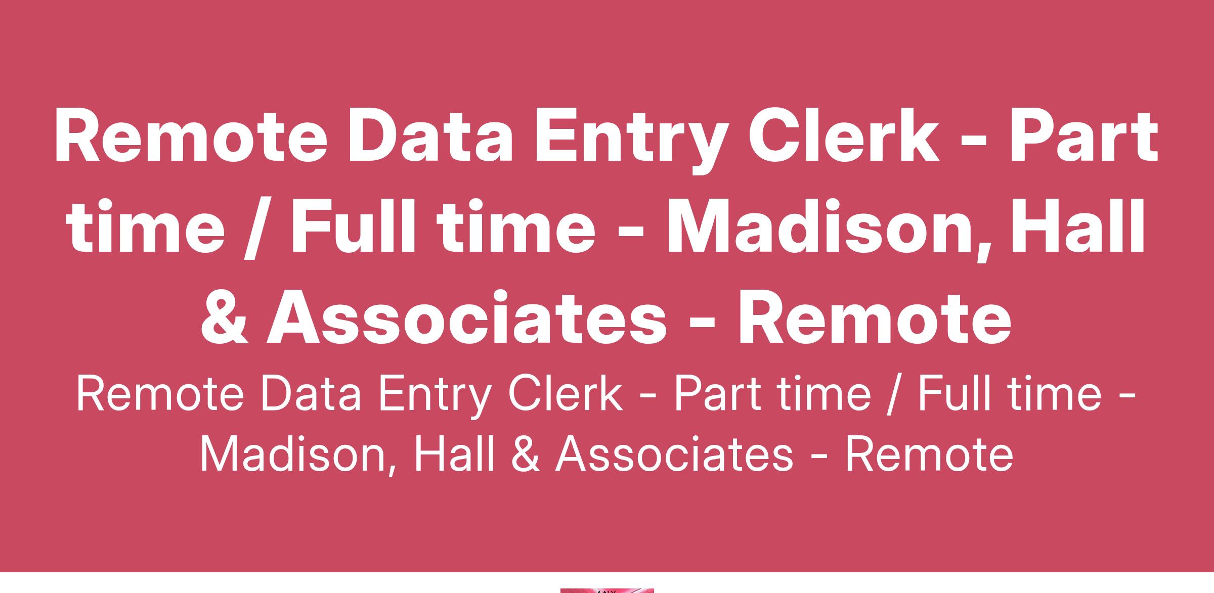This is a remote position. We are looking for a Data Entry Clerk to join our team. The successful candidate will be responsible for entering data into our computer systems accurately and efficiently, as well as verifying and correcting existing data. The Data Entry Clerk must have a keen eye for detail, excellent organizational skills, and the ability to work independently with minimal supervision. This is a great opportunity for someone who is looking to develop their data entry skills in a fast-paced environment. Responsibilities: Job Types: Part-time, Full time, Internship Pay: $30.00 per hour Benefits: Experience: Work Location: Work From Home Duties