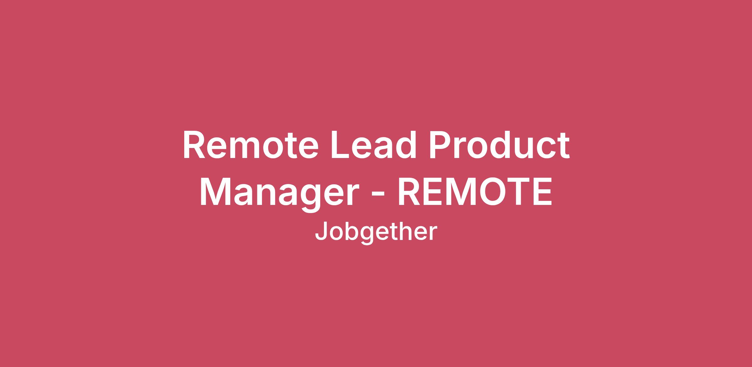 Remote Lead Product Manager - REMOTE
