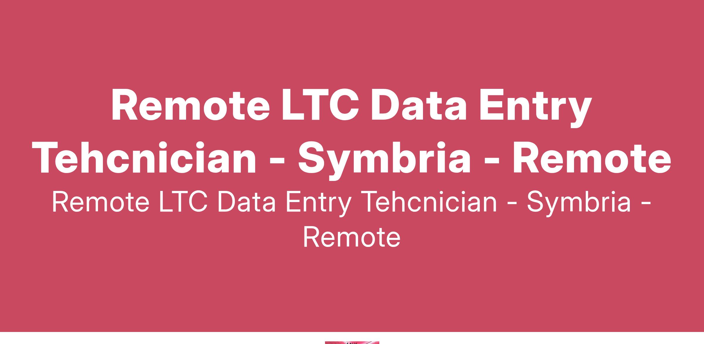 Remote LTC Data Entry Tehcnician - Symbria - Remote