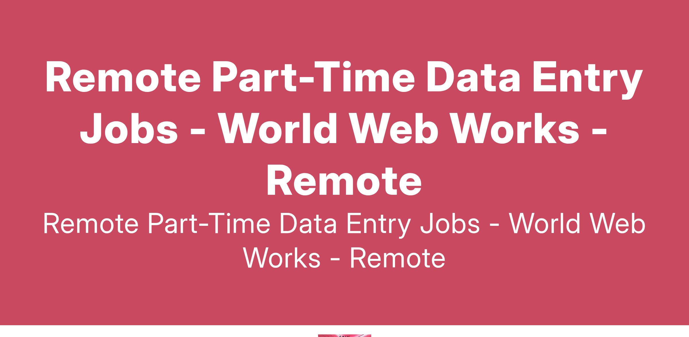 Remote Part-Time Data Entry Jobs - World Web Works - Remote