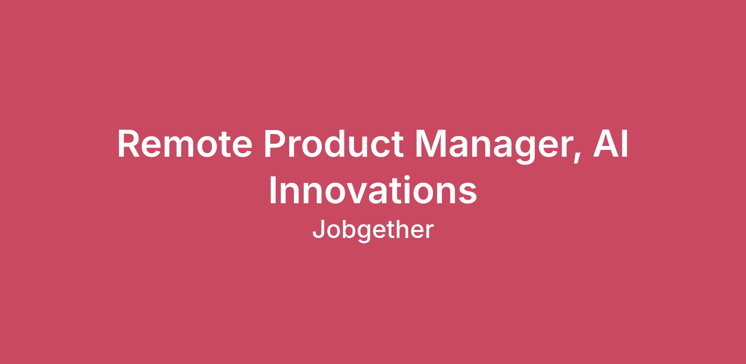 Remote Product Manager, AI Innovations