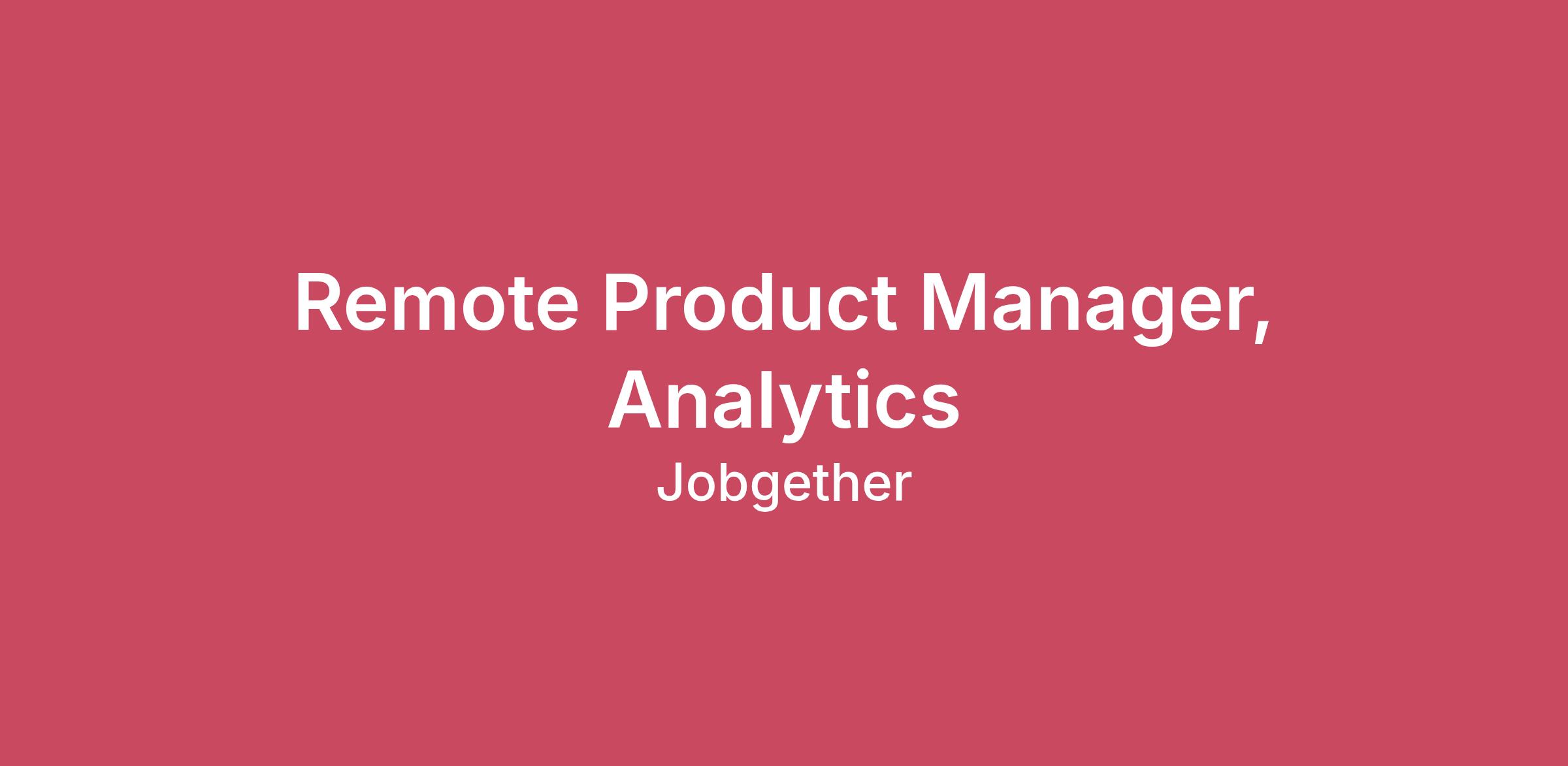 Remote Product Manager, Analytics