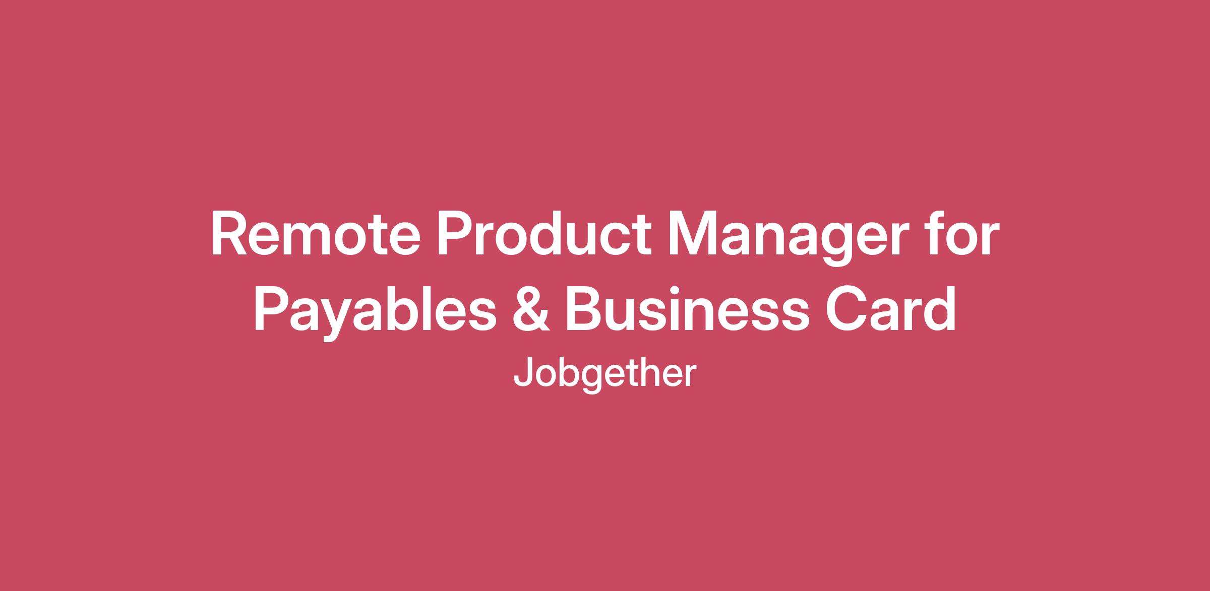 Remote Product Manager for Payables & Business Card