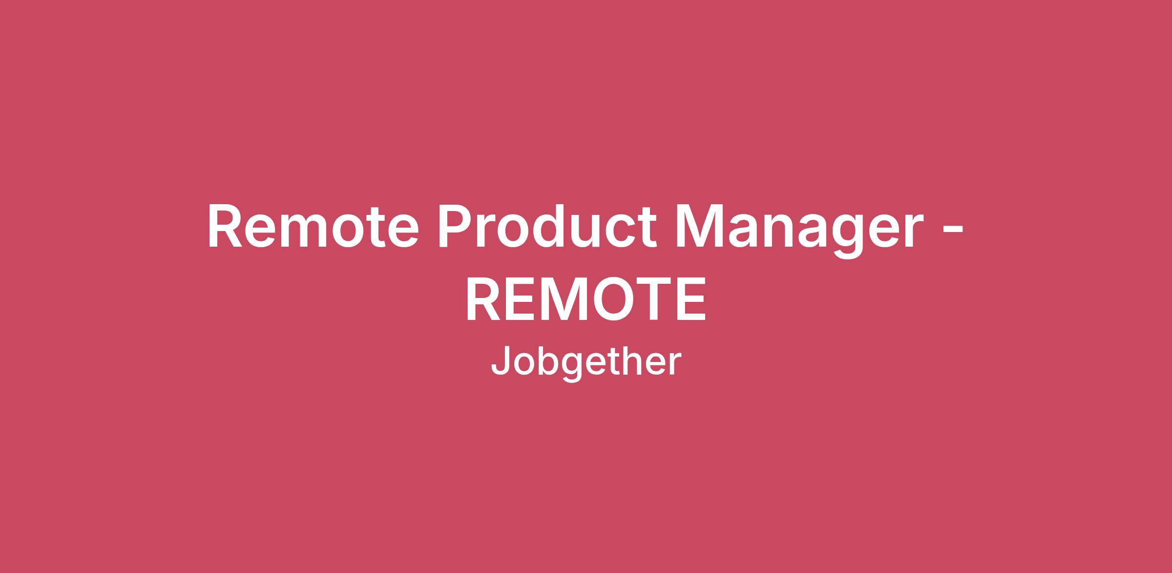 Remote Product Manager - REMOTE