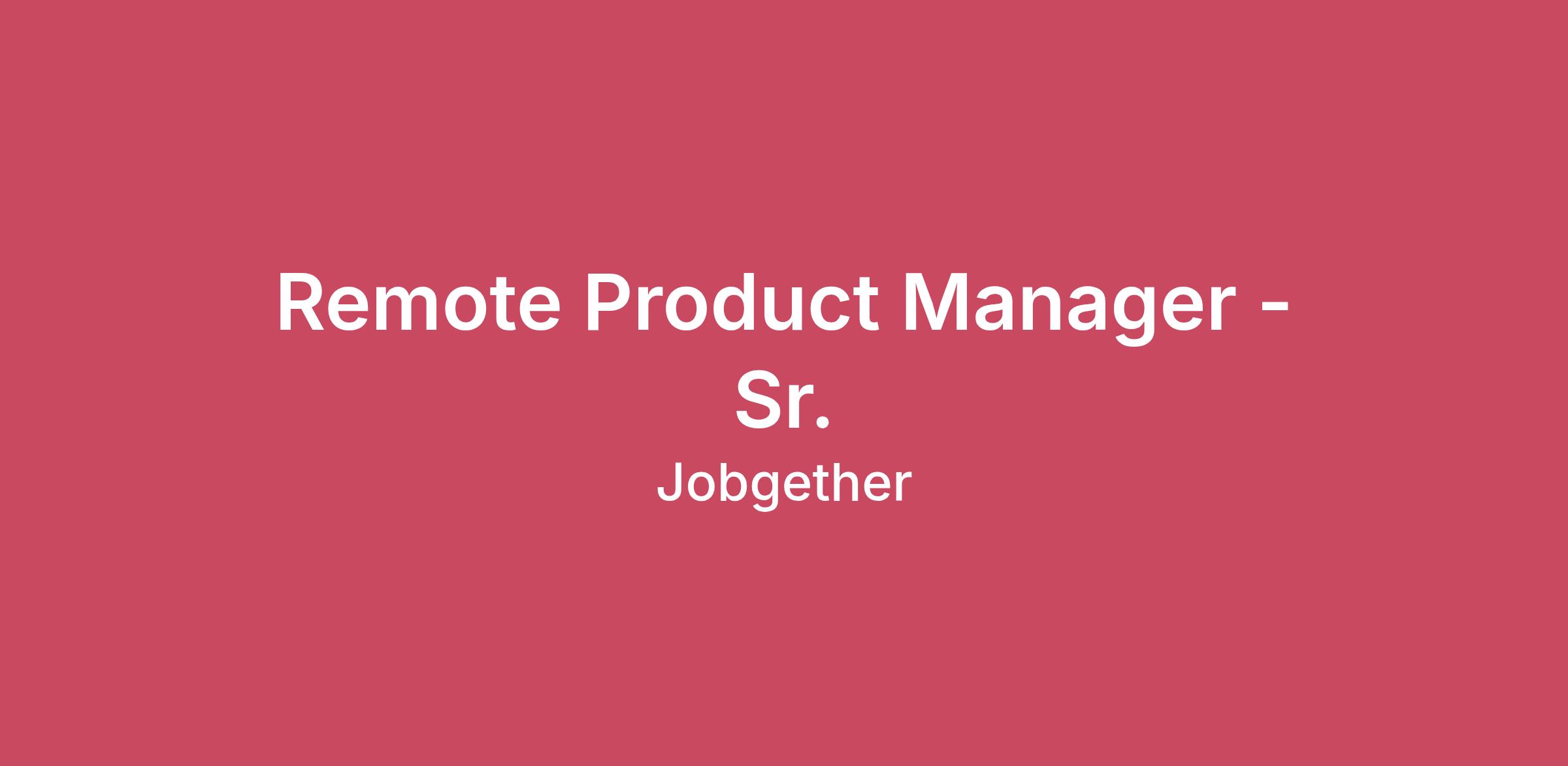 Remote Product Manager - Sr.