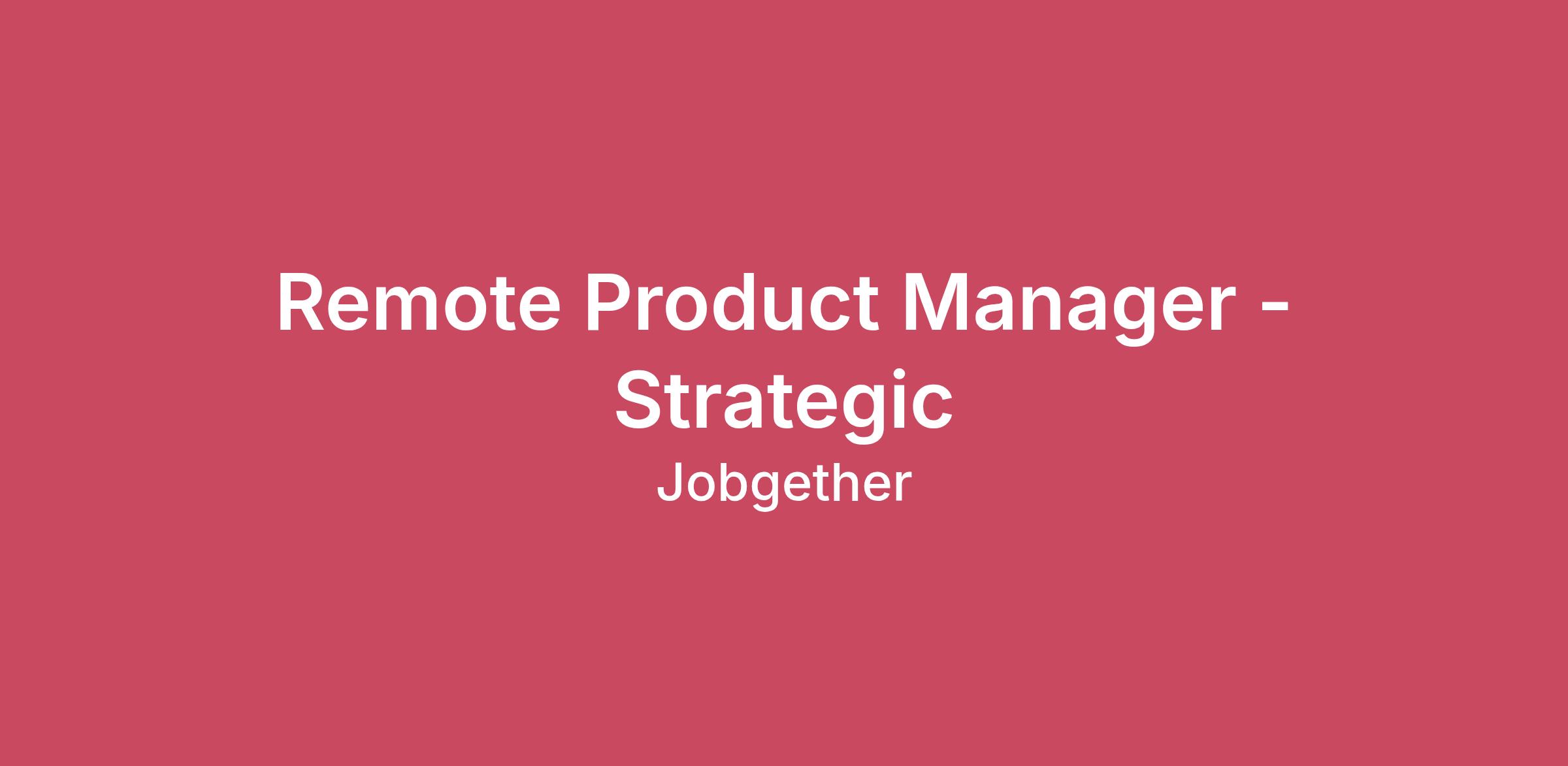 Remote Product Manager - Strategic