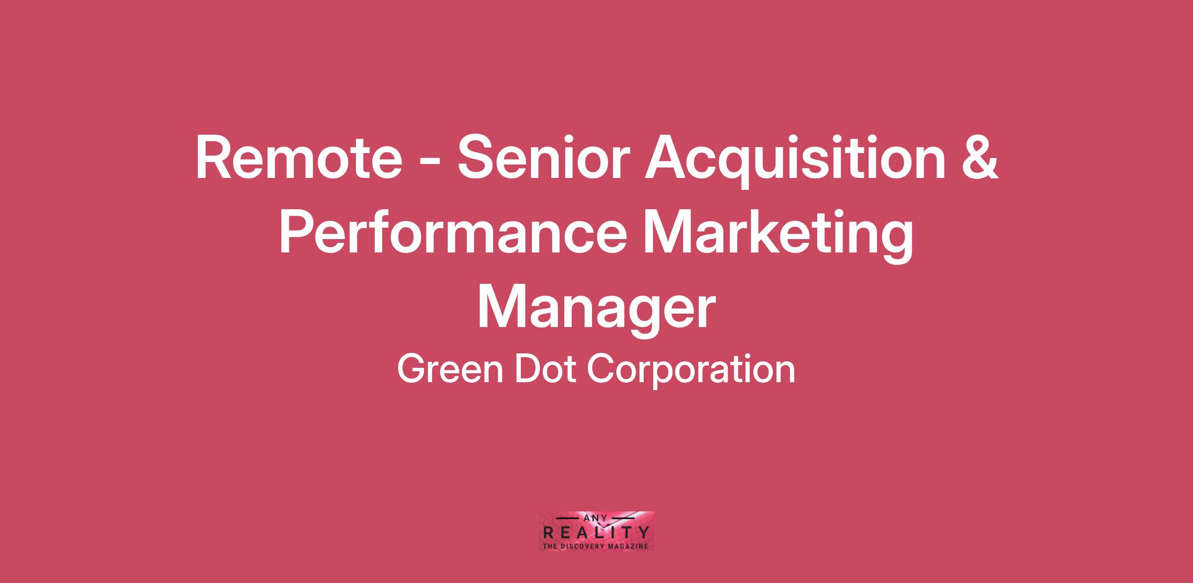 We’re looking for talented professionals, anywhere in the United States, to join us in bringing smart money management and payment solutions to everyone’s fingertips.At Green Dot, we are evolving to a new and permanent “Work from Anywhere” model designed to maximize the benefits of remote work, promote and enable a strong culture of performance and connectedness, and attract the best and brightest talent who align with our entrepreneurial spirit and mission.<<>><<>><<>><<>><<>><<>><<>><<>><<>><<>> JOB DESCRIPTIONSummary We are looking for a Senior Acquisition & Performance Marketing Manager to lead and scale our digital acquisition efforts. This role is in service to increasing our account growth and ultimately revenue. We are looking for an experienced B2C marketing leader who can leverage customers’ insights and data to create a growth marketing strategy and execute it. This role requires a strategic, data-driven marketer with a proven track record of managing affiliate programs and other digital performance channels. You will own the strategy, execution, and optimization of acquisition campaigns, driving measurable growth and efficiency for Green Dot’s direct-to-consumer products. This role will report to the VP of the Direct-to-Consumer business unit. Key Responsibilities Affiliate Channel Strategy & Growth Lead Green Dot’s affiliate marketing channel with full accountability for partner management, performance optimization, and growth. Multi-Channel Leadership: Oversee other digital acquisition channels (as needed) such as paid social, search, influencer, and emerging platforms. Test and scale new channels, including potential partnership. Strategy & Planning Develop and execute acquisition strategies to hit growth targets, balance efficiency (CAC/ROAS) with scale. Campaign Performance & Optimization Analyze performance data to improve conversion rates, reduce CAC, and maximize ROI. Lead creative testing and iterate based on insights. Partner Relationship Management Build and nurture strong relationships with affiliate partners—from onboarding and testing to performance reviews and long-term growth. Budget Management Own and optimize channel budgets, ensuring efficient allocation and ROI delivery. Reporting & Strategic Insights Create and present performance dashboards, channel forecasts, and post-campaign analysis to senior leadership. Creative Collaboration Work with Brand Marketing to test creative, copy, landing pages, and seasonal promotions that drive engagement and results. Cross-Functional Collaboration Partner with Compliance, Legal, Analytics, Product, and Brand teams to ensure seamless and compliant campaign execution. Qualifications 7-10+ years of experience in digital acquisition marketing, with strong hands-on experience managing affiliate channels. Demonstrated success managing multiple performance channels (e.g. affiliate, paid social, SEM, display, influencer, etc.) Proficiency with affiliate platforms (e.g., Impact, CJ, Cake). Deep understanding of performance metrics: CPA, LTV, ROAS, CTR, etc. Strong analytical skills with proficiency in marketing analytics platforms, attribution tools, and Excel. Proven ability to balance strategic planning and tactical execution in a fast-paced high growth environment. Excellent communication, negotiation, and project management skills. Previous experience in software, SAAS, or Fintech is ideal.Bachelor’s degree in Marketing, Business, or a related field. POSITION TYPERegularPAY RANGEThe targeted base salary for this position is $118,400 to $177,600 per year. The final compensation will be determined by a number of factors such as qualifications, expertise, and the candidate’s geographical location.<<>><<>><<>><<>><<>><<>><<>><<>><<>><<>>We’re Here to Support You—Accommodations Upon RequestGreen Dot is committed to providing an inclusive and accessible hiring experience for all candidates. If you require a reasonable accommodation during any part of the application or interview process, we encourage you to let us know. We will work with you to meet your needs in a way that respects your privacy and ensures equal opportunity. Our goal is to support every applicant in showcasing their talents and potential.Work Authorization RequirementAt Green Dot Corporation, we value diversity and strive for fair and inclusive hiring practices. However, we are currently unable to offer visa sponsorship. All applicants must be legally authorized to work in the United States at the time of application and throughout the duration of employment, without the need for current or future sponsorship.