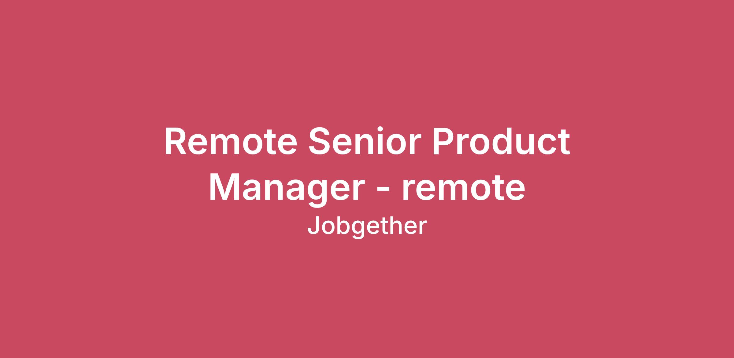 Remote Senior Product Manager - remote