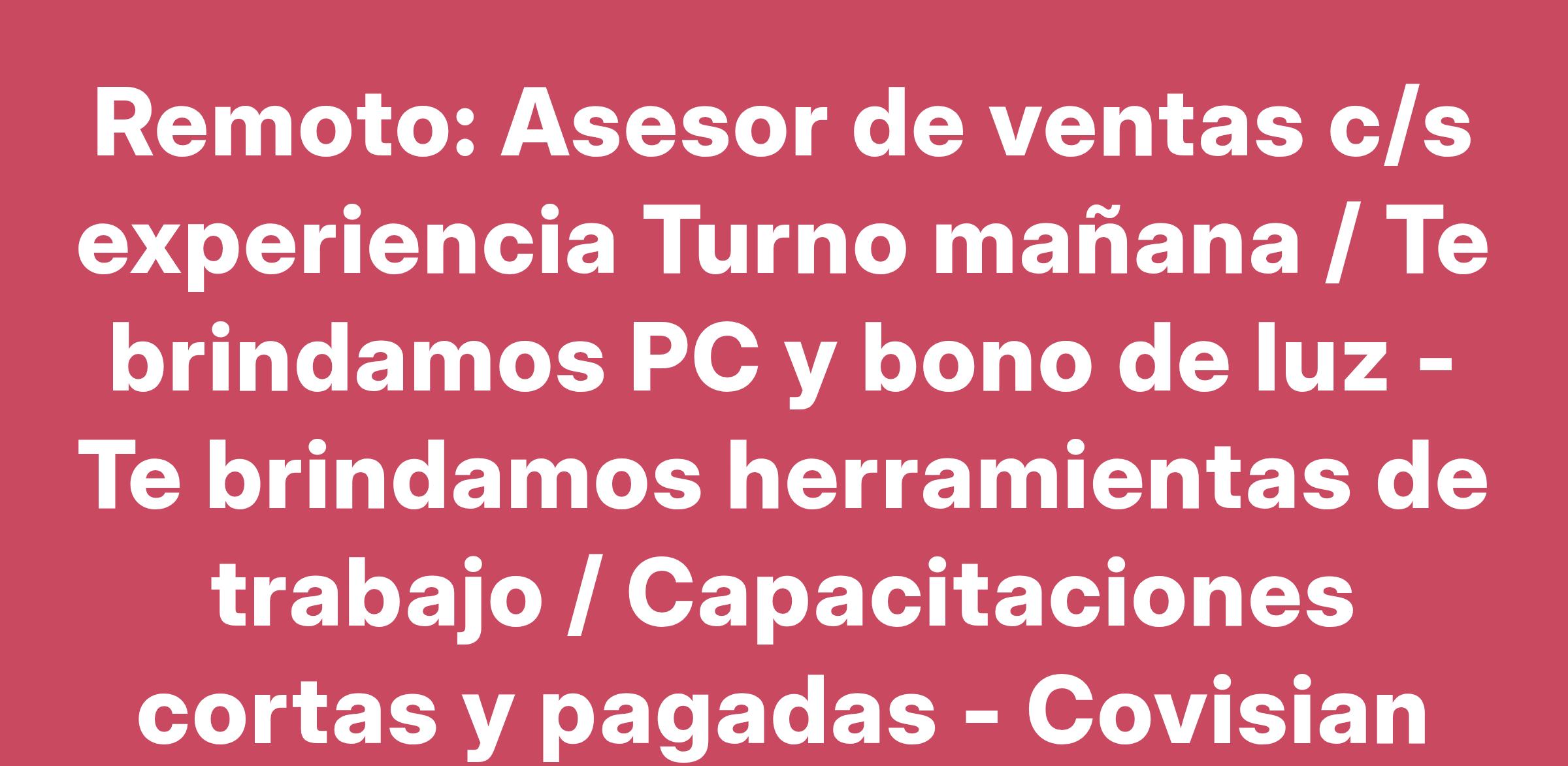 MODALIDAD DE TRABAJO: REMOTA (Te brindamos PC, Headseat y modem de internet)