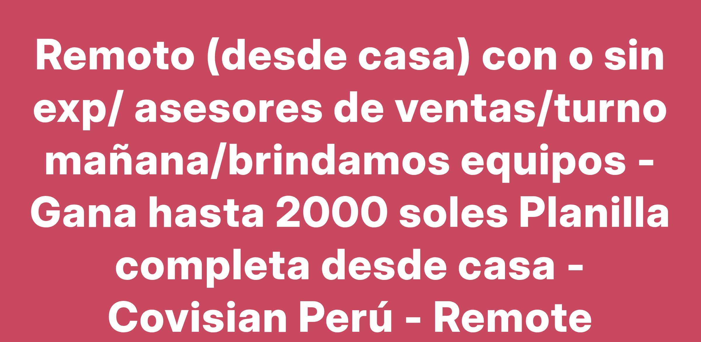 Lugar de trabajo :remoto¿QUÉ TE OFRECEMOS?