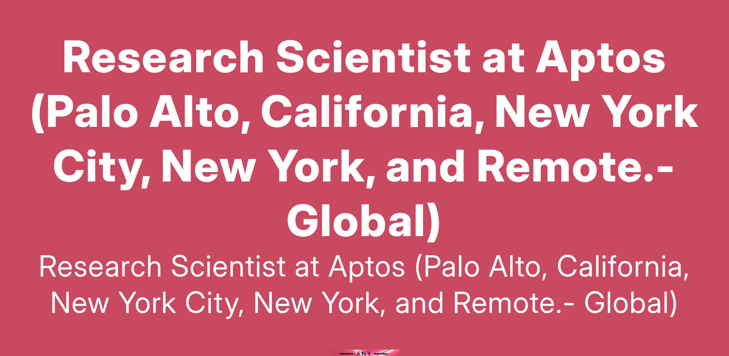 Research Scientist at Aptos (Palo Alto, California, New York City, New York, and Remote.- Global)