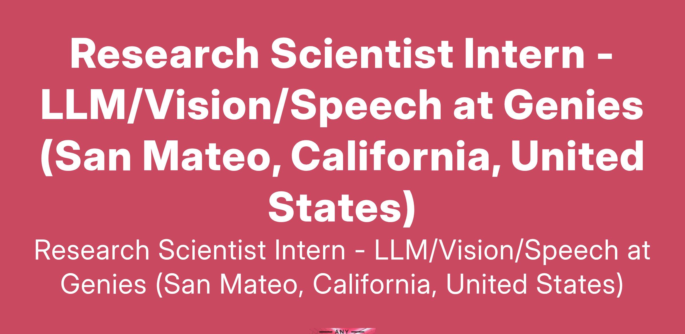 Research Scientist Intern - LLM/Vision/Speech at Genies (San Mateo, California, United States)