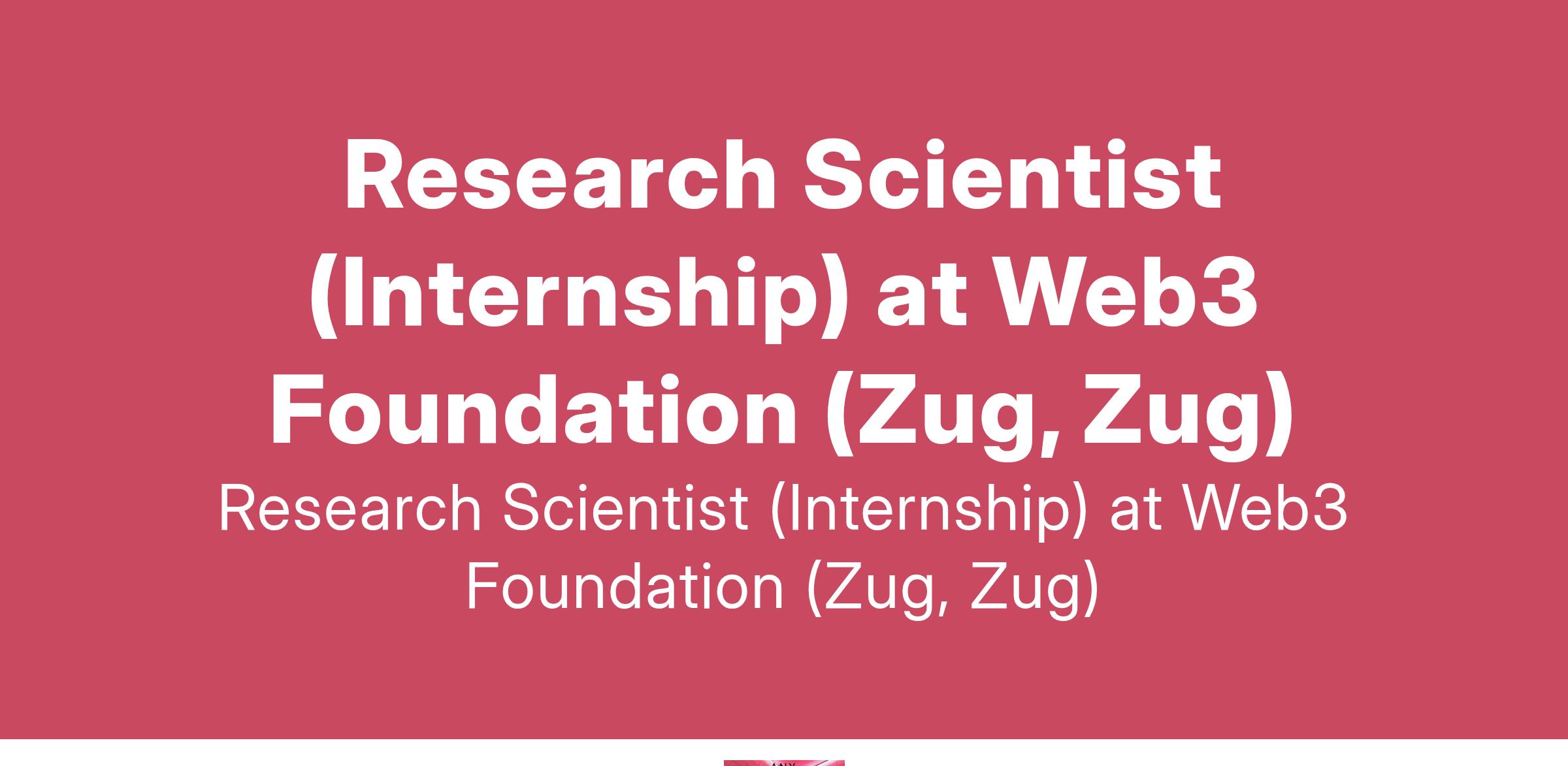 Research Scientist (Internship) at Web3 Foundation (Zug, Zug)