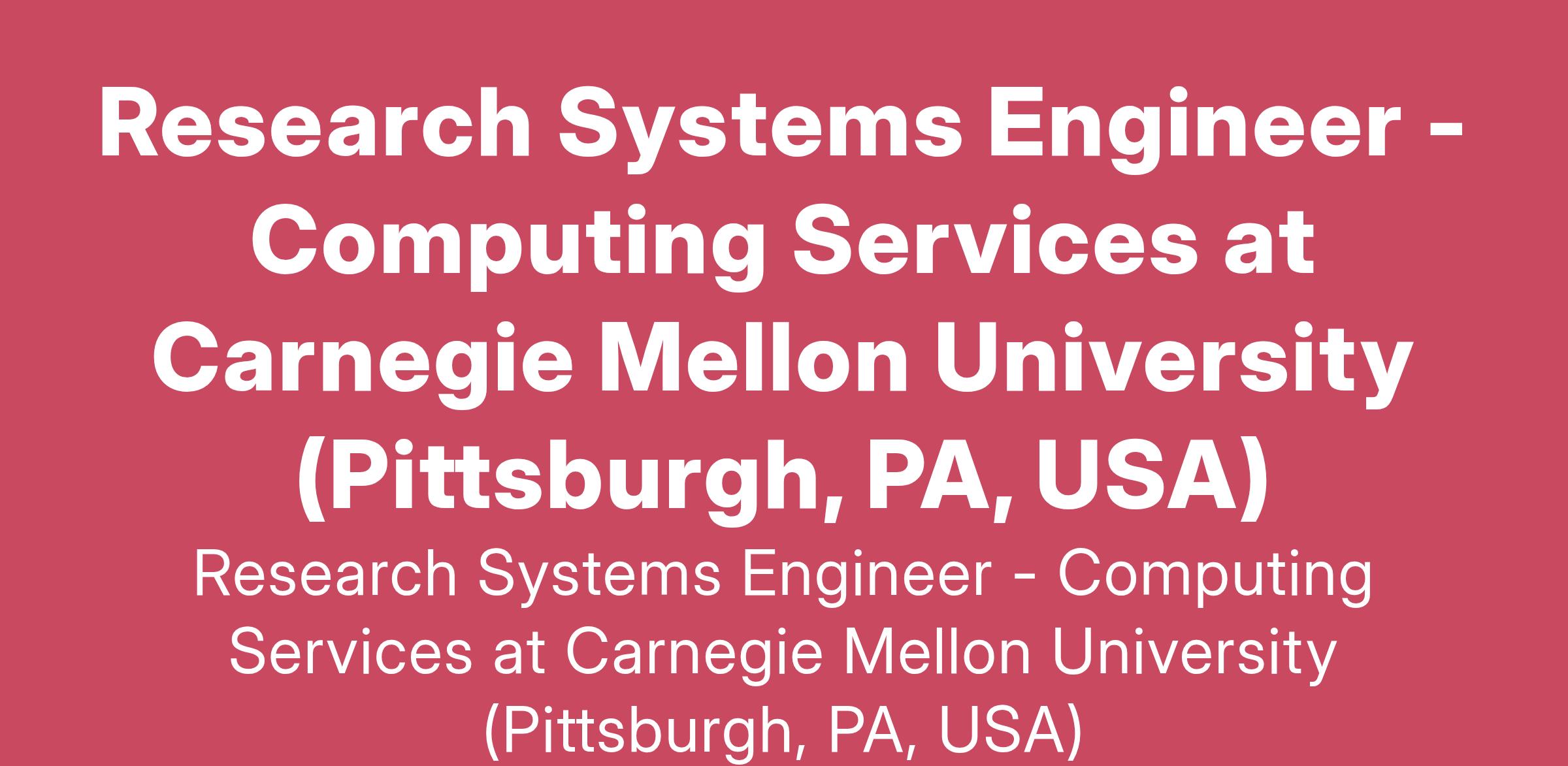 Research Systems Engineer - Computing Services at Carnegie Mellon University (Pittsburgh, PA, USA)
