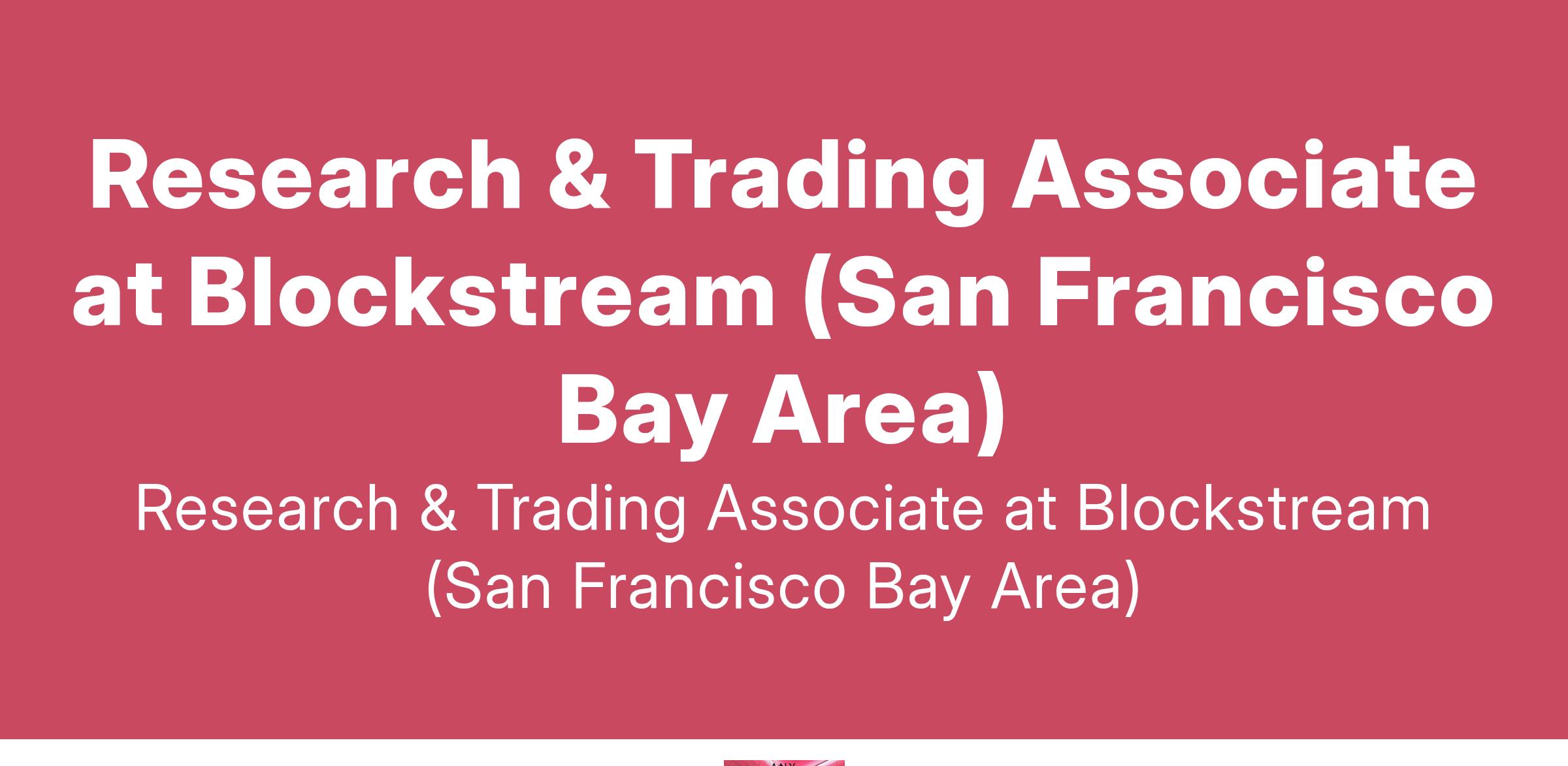 Research & Trading Associate at Blockstream (San Francisco Bay Area)