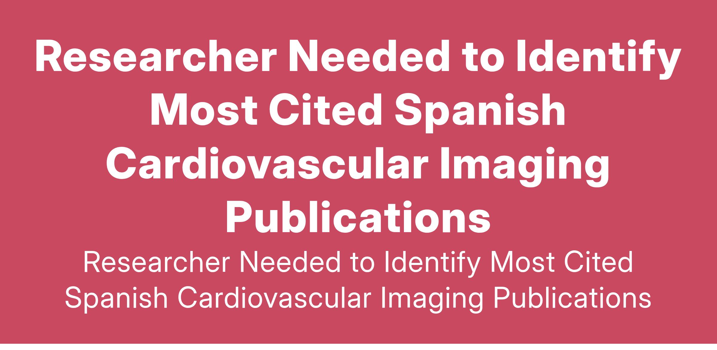 I require an experienced researcher to identify the 10 most cited scientific publications in the field of ecocardiography, cardiac CT, and cardiac MRI, authored by Spanish researchers. This project focuses... (Budget: $2 - $8 USD, Jobs: Data Processing, Medical, Research, Spanish Translator, Web Search)