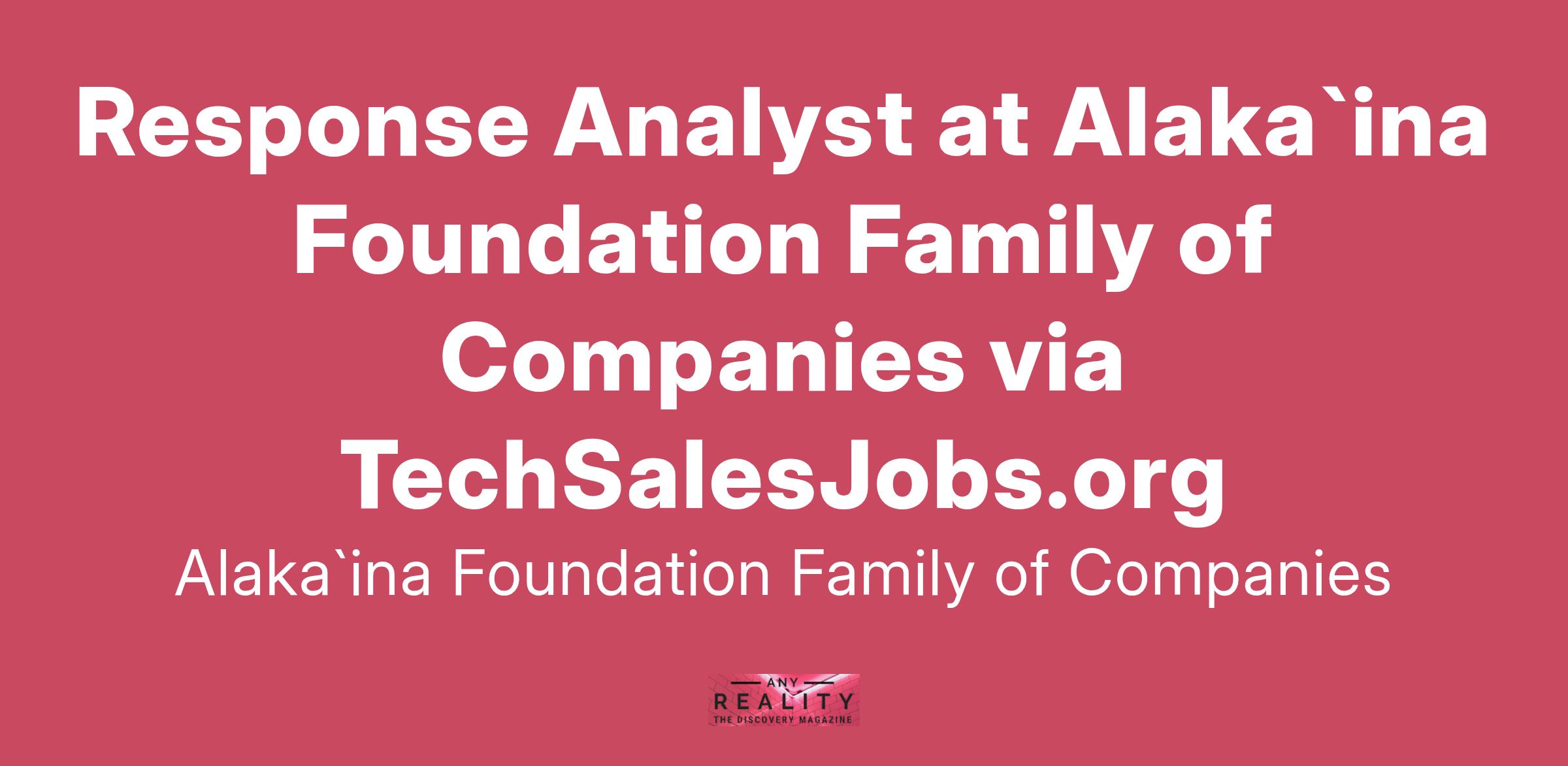 The Alaka`ina Foundation Family of Companies (FOCs) is looking for a Response Analyst to support our government customer located in Honolulu, Hawai'i.