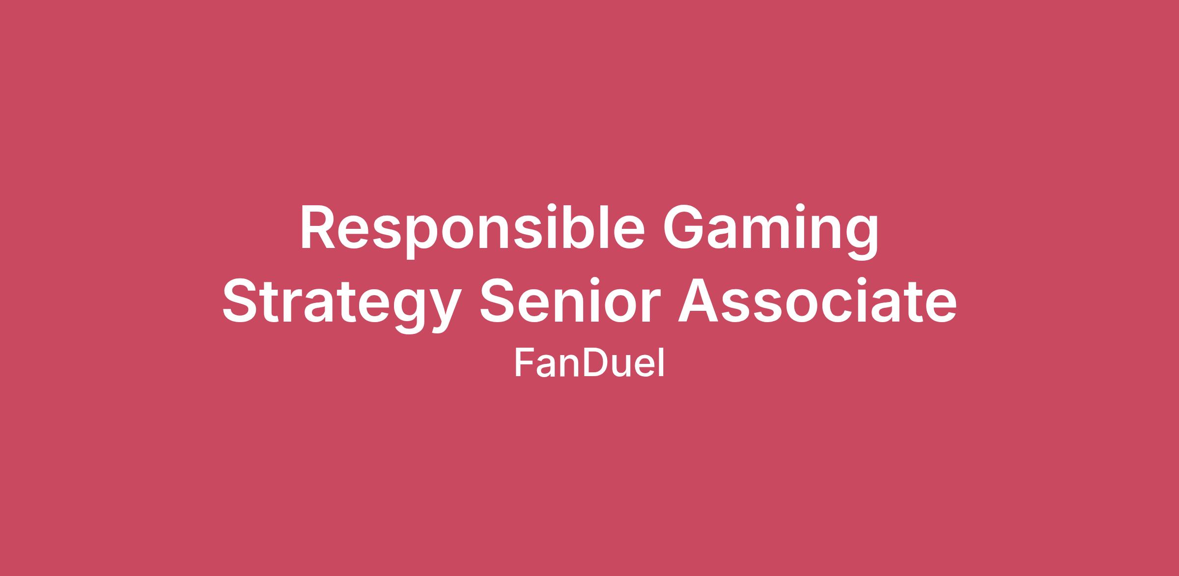 FanDuel is looking to hire a Senior Strategy Associate to join the Responsible Gaming team. Responsible Gaming is one of the key components of FanDuel’s long term strategy to deliver a best-in-class sports betting experience. We are looking to hire a Senior Strategy Manager to help take our Responsible Gaming efforts to the next level. This is an exciting opportunity to join a team with significant exposure across the organization and help build out the next chapter of Responsible Gaming at FanDuel.