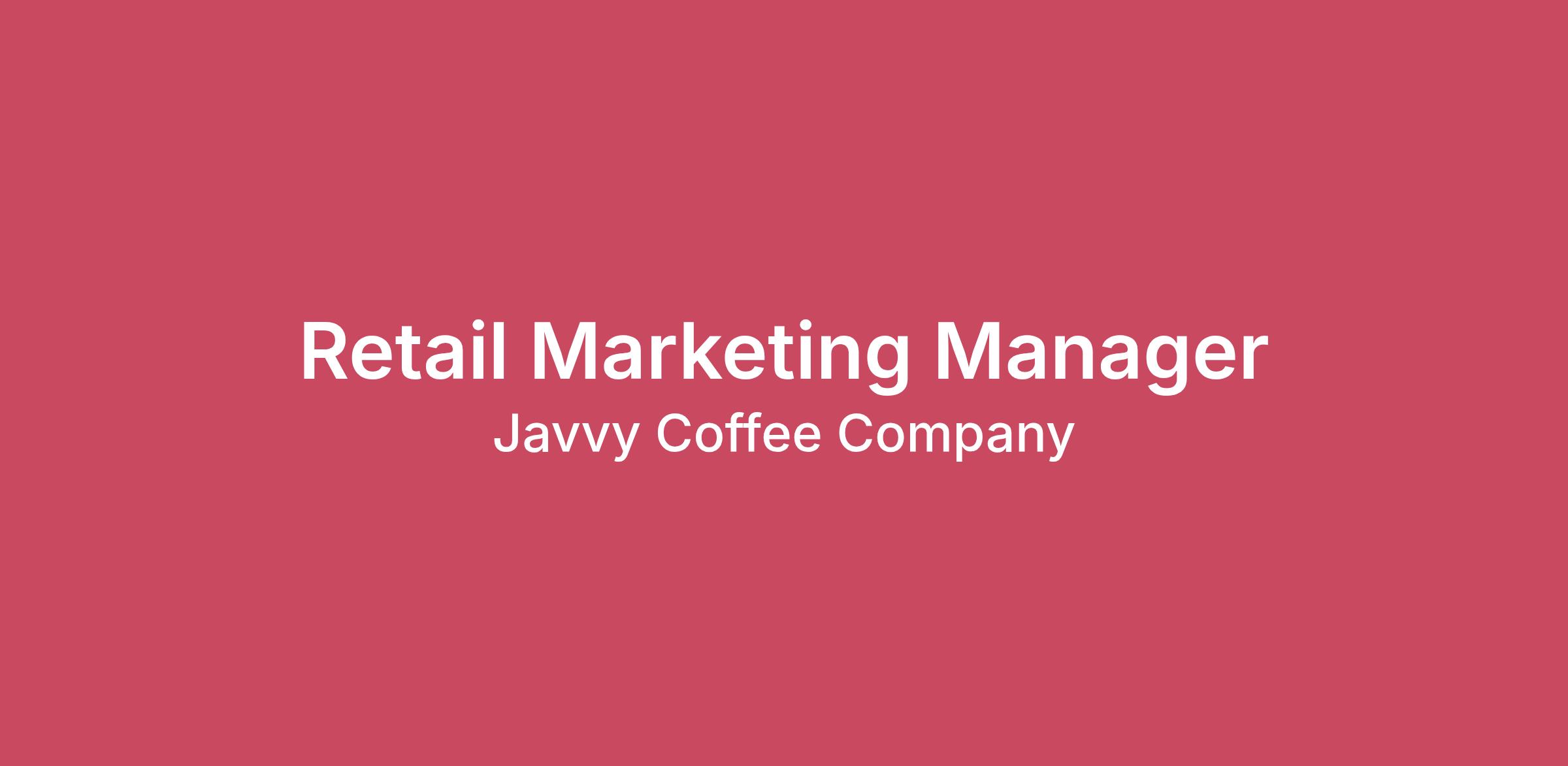 The Opportunity:Javvy Coffee is on a mission to transform the in-store retail experience. We create impactful, high-visibility campaigns that drive engagement, brand awareness, and sales across retail environments. We’re looking for a Retail Marketing Manager to own our in-store and digital media strategy and execution, ensuring our brand stands out at the point of purchase.The Retail Marketing Manager will be responsible for planning, executing, and optimizing all physical retail marketing initiatives. This includes in-store displays, signage, digital media, shelf placements, and collaborations with retail partners. They will also be responsible for retail site content accuracy and maximization.The ideal candidate combines creativity with strong project management skills and has a deep understanding of retail merchandising dynamics.What You’ll Own:Develop and implement in-store marketing strategies that align with overall brand objectives and retail goals.Collaborate with cross-functional teams (Sales, Marketing, Creative) to design engaging retail marketing assets.Manage retail marketing campaigns end-to-end, including planning, production, installation, and post-campaign analysis.Build and maintain strong relationships with retail and display production partners to secure prime placements, maximize shopability and drive campaign success.Partner with internal and external stakeholders to close performance gaps.Monitor campaign performance, gather insights, and optimize marketing strategies for maximum ROI.Maintain a calendar of retail marketing activities, ensuring deadlines, budgets, and quality standards are met.Stay up-to-date with retail trends, best practices, and emerging technologies to drive innovation.Partner with 3rd party digital and hard asset vendors on retail execution. You’re a Fit If…3–5+ years of experience in retail marketing, shopper marketing, or retail media management.Proven experience managing physical media campaigns in grocery, mass, or specialty retail channels.Strong project management skills and ability to manage multiple campaigns simultaneously.Excellent communication and relationship-building skills with internal and external stakeholders.Analytical mindset with ability to measure and report on campaign effectiveness.Proficiency with project management tools, Microsoft Office, and/or retail merchandising software. Retail digital media platforms experience preferred (Roundel, WMC ect)Why This Role Rocks:Competitive Salary 100% Company-Paid Health, Dental, Vision & Life Insurance for employees(Family coverage available at employee cost)401(k) Retirement PlanParental LeaveFree Access to Javvy ProductsCareer Growth OpportunitiesCollaborative, Fast-Paced Start-Up Environment