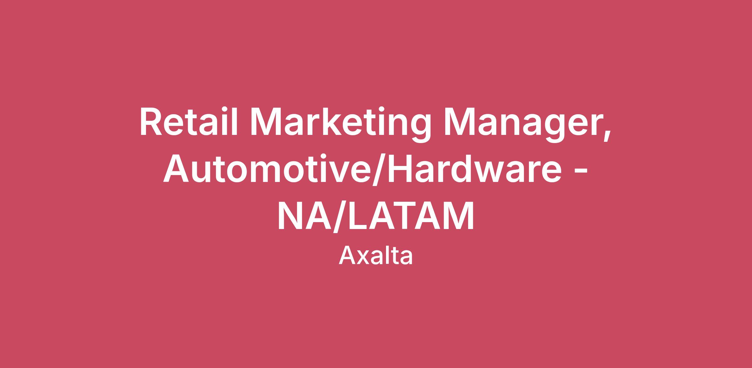 JOB TITLE: Retail Marketing Manager, Automotive/Hardware - NA/LATAMAxalta has remained at the forefront of the coatings industry by continually investing in innovative solutions. We engineer technologies that protect customers’ products – whether they are battling heat, light, corrosion, abrasion, moisture, or chemicals – and add dimension and beauty with colorful finishes. We have a vast and ever-evolving portfolio of brands primed to play an important part in everything from modernizing infrastructure around the world to enabling the next generation of electric and autonomous vehicles.Job Summary: Drive demand. Build brand. Accelerate growth.As Retail Marketing Manager, you’ll be the strategic force behind our retail automotive marketing in North America and LATAM regions. You’ll partner closely with sales leads to craft and execute high-impact campaigns that fuel sell-through, elevate brand visibility, and unlock new customer segments.Work Location: This fully remote role requires a local presence on the East Coast to allow for onsite visits at customer sites and attendance at key events.Key Responsibilities:Retail-Driven Strategy: Build and activate promotional plans that drive footfall, online traffic, and conversion across key retail partners.Customer-Centric Campaigns: Develop tailored marketing programs for top accounts, aligned to sales targets and in-store execution.Channel Growth: Collaborate with sales leadership to retain and grow existing accounts while identifying new sectors and opportunities.Budget Ownership: Manage and optimize marketing budgets to maximize ROI across campaigns and initiatives.Agency Leadership: Brief and manage creative, media, and digital agencies to deliver compelling content and assets.Event Execution: Lead trade and consumer events that amplify product launches and brand engagement.Cross-Functional Collaboration: Work with supply chain, category, and finance teams to align marketing with broader business goals.Customer Engagement: Build trusted relationships with key retail partners to ensure marketing plans are aligned and impactful.Market Intelligence: Lead research initiatives to validate new product opportunities and inform strategic decisions.Performance Reporting: Track campaign results, report ROI, and present insights to senior leadership.Product & Pricing Support: Coordinate product changes, price increases, and competitive analysis with product and sales teams.Who You’ll Work With:Internal: Sales, Supply Chain, Category Management, FinanceExternal: Retail Customers, Creative & Media AgenciesPerformance Metrics:Promotional calendar aligned with sales leads and executed on timeGrowth in customer acquisition and retentionROI tracked and reported monthlySuccessful launch of new products into target sectorsQualifications:Bachelor's degree in Marketing or related field preferred and/or at least 3-5 years of retail marketing experience with automotive and/or hardware alignment.5+ years of proven success driving promotional campaigns in retail environments (automotive or hardware preferred).Strong understanding of shopper behavior and in-store activation.Strategic planning and execution.Agency and stakeholder management.Creative development and media planning.Commercial acumen and margin awareness.Data-driven decision-making and performance tracking.Influential communicator with strong relationship-building skills.Highly organized project manager with a bias for action.Results-driven, pragmatic, and resilient.Comfortable juggling multiple priorities in a fast-paced environment.Travel Required: approx. 40% across North America to meet with customers and attend key events.This is an active opening for which we are recruiting to fill immediately. Axalta operates its business in two segments: Performance Coatings and Mobility Coatings, which serve four end markets, including Refinish, Industrial, Light Vehicle and Commercial Vehicle, across North America, EMEA, Latin America and Asia-Pacific. Our diverse global footprint allows us to deliver solutions in over 140+ countries and coat 30 million vehicles per year. We’ve recently set an exciting 2040 carbon neutrality goal, in addition to 10 other sustainability initiatives, and we take pride in working with our customers to optimize their businesses and achieve their goals. Our Company:Axalta has remained at the forefront of the coatings industry by continually investing in innovative solutions. We engineer technologies that protect customers’ products – whether they are battling heat, light, corrosion, abrasion, moisture, or chemicals – and add dimension and beauty with colorful finishes. We have a vast and ever-evolving portfolio of brands primed to play an important part in everything from modernizing infrastructure around the world to enabling the next generation of electric and autonomous vehicles. Axalta operates its business in two segments: Performance Coatings and Mobility Coatings, which serve four end markets, including Refinish, Industrial, Light Vehicle and Commercial Vehicle, across North America, EMEA, Latin America and Asia-Pacific. Our diverse global footprint allows us to deliver solutions in over 140+ countries and coat 30 million vehicles per year. We’ve recently set an exciting 2040 carbon neutrality goal, in addition to 10 other sustainability initiatives, and we take pride in working with our customers to optimize their businesses and achieve their goals. Axalta may use technology-assisted tools, including artificial intelligence (AI), to support certain aspects of the recruitment and selection process. These tools may be used to help manage applications, identify job-related qualifications, and assist recruiter review. All hiring decisions involve human oversight and review.Recruitment Fraud Alert: We take candidate safety seriously. If you believe you’ve encountered a fraudulent job posting claiming to represent our company, please include a link or scre