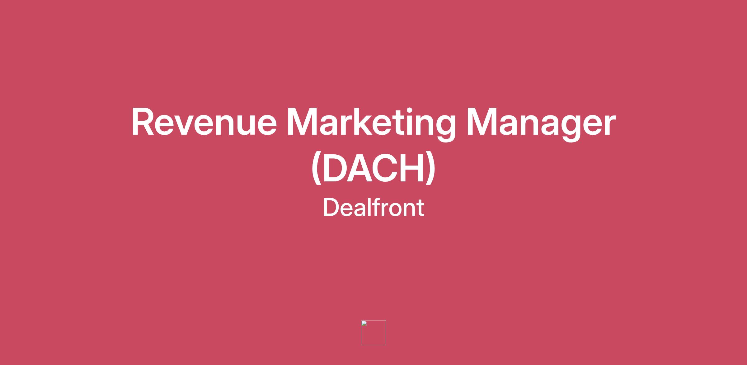 Dealfront is a go-to-market and signal orchestration platform for B2B mid-market companies. We give businesses the clarity to focus their efforts where they’ll count most - on the accounts that fit their ideal customer profile, show real buying intent, and are actively engaging. No more cold outreach and no more bloated target lists. Just better deals, faster.Our platform brings together powerful data, real-time insights, and intelligent prioritisation to help our customers identify, engage, and convert the right accounts, at the right time. Built for teams that value speed, precision, and simplicity, Dealfront turns complexity into action.Join us and be a part of our journey to transform the way businesses win more deals!About The RoleThe Revenue Marketing Manager (DACH) is responsible for driving demand, pipeline, and revenue growth across the DACH region — Germany (DE), Austria (AT), and Switzerland (CH) — by executing high-impact, locally relevant revenue marketing programs.This role has a strong regional mandate, owning marketing execution for one of the company’s most strategically important and commercially mature markets. Success depends on a deep understanding of DACH-specific buyer behaviour, cultural nuances, language expectations, and B2B buying cycles, particularly within B2B SaaS environments.Working closely with regional Sales teams and central marketing functions, the Revenue Marketing Manager (DACH) adapts global strategy into locally resonant programs that generate qualified pipeline and support revenue outcomes. This role acts as the primary marketing owner for the DACH region, ensuring regional needs are represented while remaining aligned with global priorities.Reporting into the Director of Demand, this role is ideal for a T-shaped B2B SaaS marketer with a proven track record of marketing successfully to DACH audiences — someone who can think strategically, but excels in hands-on execution, optimisation, and iteration. Performance is measured through pipeline creation, conversion rates, and revenue impact within DACH.ResponsibilitiesDACH Revenue Ownership: Own and drive revenue marketing execution across Germany, Austria, and Switzerland, contributing directly to demand creation, demand capture, and pipeline progression in the region.Global-to-Local Strategy Translation: Translate global demand generation and campaign strategies into locally relevant programs tailored to DACH market dynamics, buyer expectations, and language requirements.Regional Campaign Planning & Delivery: Plan and execute integrated regional campaigns across content, paid media, organic channels, events, partnerships, and go-to-market initiatives, with a clear focus on B2B SaaS audiences.Funnel & Pipeline Management: Balance top- and mid-funnel demand generation with bottom-of-funnel programs that support pipeline acceleration, deal progression, and conversion in collaboration with Sales.Sales Alignment (DACH): Partner closely with regional Sales leadership and account teams to align on ICPs, priority segments, target accounts, and pipeline goals specific to the DACH region.Cross-Functional Collaboration: Work with central Content, SEO, Paid Media, Product Marketing, and RevOps teams to ensure cohesive execution while advocating for DACH-specific needs.Hands-On Execution: Operate as a hands-on marketer, directly owning execution across channels and continuously optimising performance.Performance Tracking & Optimisation: Monitor and optimise regional performance using metrics such as pipeline contribution, conversion rates, CAC, and ROI.Regional Insight Sharing: Feed DACH-specific market insights, customer feedback, and performance learnings back into the wider demand and product marketing teams.Continuous Improvement: Test, iterate, and improve regional programs to increase efficiency, relevance, and revenue impact. Proven DACH Marketing Experience: Demonstrated track record (3–5+ years) of successfully marketing to the DACH region (Germany, Austria, Switzerland), with a strong understanding of regional buyer behaviour, language considerations, and go-to-market nuances.Strong B2B SaaS Background (Preferred): Experience in B2B SaaS is strongly preferred, particularly in revenue marketing, demand generation, or growth roles supporting sales-led or hybrid GTM motions. Experience in MarTech or SalesTech is a plus.Revenue & Pipeline Focus: Proven experience driving measurable pipeline and revenue impact, not just leads or awareness.Execution & Ownership Mindset: Ability to translate strategy into action and deliver hands-on execution across campaigns and channels, owning outcomes end-to-end.Strategic yet Practical: Comfortable aligning regional execution to global strategy while remaining highly operational and detail-oriented.Cross-Functional Collaboration: Strong stakeholder management skills with experience working closely with Sales and collaborating across distributed, global marketing teams.Analytical & Performance-Driven: Data-driven mindset with experience using funnel metrics, pipeline data, and performance insights to guide optimisation and decision-making.Language & Communication: Native-level German and professional working proficiency in English, with the ability to communicate effectively with both regional and global stakeholders.Education: Bachelor’s degree in Marketing, Business, or a related field (or equivalent practical experience). The chance to work with a very knowledgeable, high-achieving and fun team.An international, diverse, dynamic and committed work environment.The opportunity to work remotely, with a flexible work schedule.Mental Health support with Auntie.Annual company retreats in sunny locations and team off-sites :)