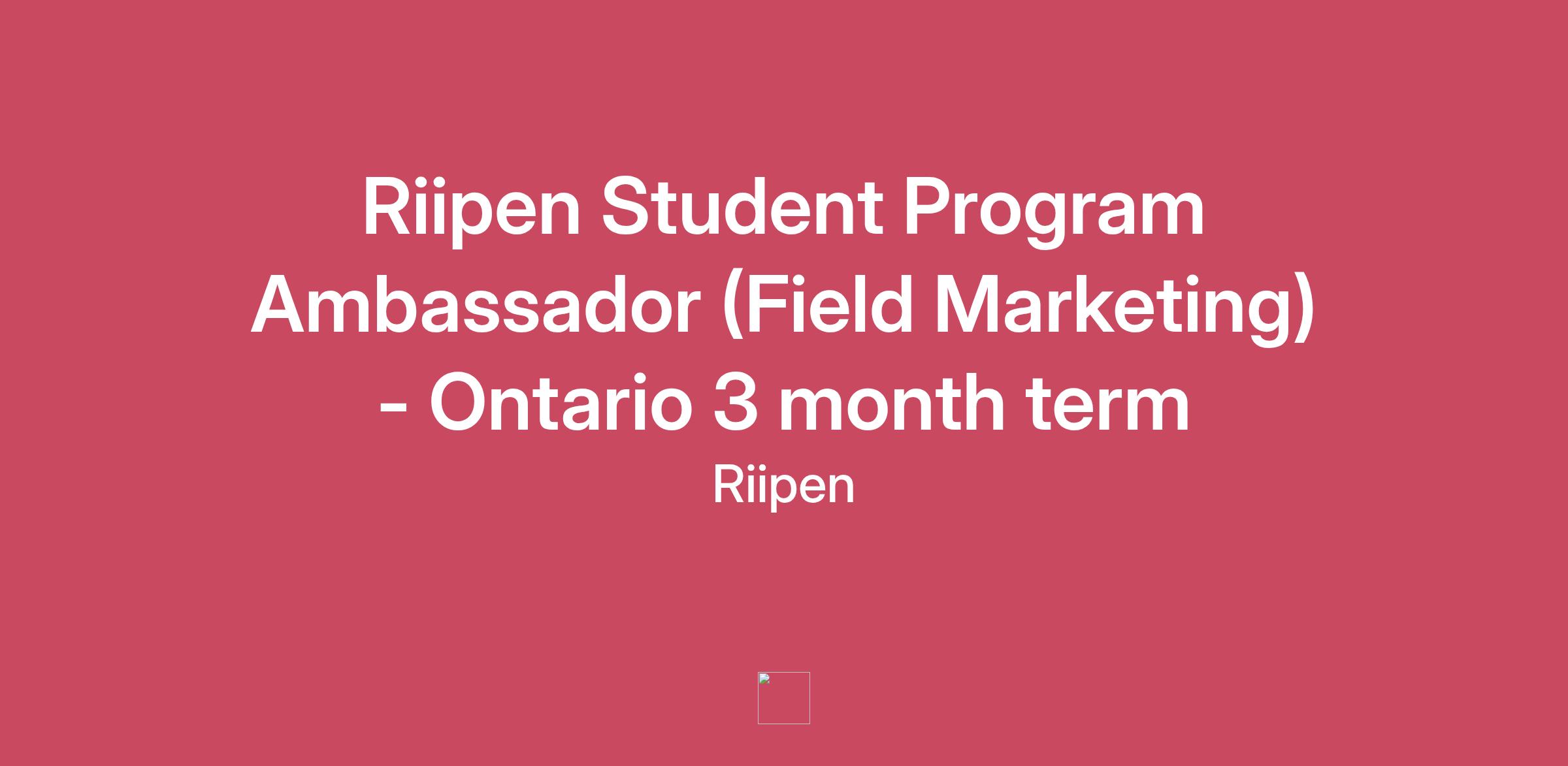 Riipen Student Program Ambassador (Field Marketing) - Ontario 3 month termApplication Deadline: 3 January 2026Department: Student SuccessEmployment Type: Part TimeLocation: Canada - RemoteCompensation: $23.00 / hourDescriptionRiipen is recruiting Student Ambassadors to represent Riipen’s Lab, LevelUp and FuturePath programs across priority campuses in different regions.As a Student Ambassador, you will play a key role in increasing student awareness, engagement, and sign-ups for Riipen Labs between January & March 2026. This is a part-time role (20 hours per week for 3 months). This is a paid, short-term field marketing role ideal for students who are well-connected on campus, comfortable speaking with peers, and interested in marketing, community building, or career development initiatives. This role is fully remote and open to candidates in Ontario.The hourly rate for this position is $23 per hour. Key Responsibilities As a Riipen Labs Student Ambassador, you will: Promote Riipen’s student programs on campus through: Campus events and info sessions Outreach to student clubs Peer-to-peer conversations Promoting programs in high traffic areas through posters & flyers Distribute Riipen Labs branded materials using your unique UTM QR code to drive and track sign-ups Host or support small on-campus info sessions to educate students about Riipen Labs and how to participate Act as a knowledgeable point of contact for students, answering questions and directing them to the Riipen platform Provide twice weekly activity updates and lead metrics, including outreach efforts and sign-ups generated Represent the Riipen brand professionally and enthusiastically on campus Ambassador Toolkit & Support Each ambassador will receive a complete on-campus activation kit, including flyers, handouts, banner, sweatshirt, and swag items. All materials will be provided, along with onboarding and training to ensure ambassadors feel confident representing Riipen Labs. Each ambassador will use their unique UTM QR code across all flyers and cards Sign-ups and engagement will be tracked twice weeklyPerformance data will be used for reporting and program evaluation Skills, Knowledge and ExpertiseYou may be a good fit if: Are currently enrolled at a post-secondary institution (this is a MUST and proof of enrolment will be required) Are well-connected and active on campus Have previous sales experience Enjoy talking to peers and promoting opportunities Are organized, reliable, and comfortable tracking your activities Are very self motivated and thrive on driving results Have an interest in marketing, communications, entrepreneurship, or career development
