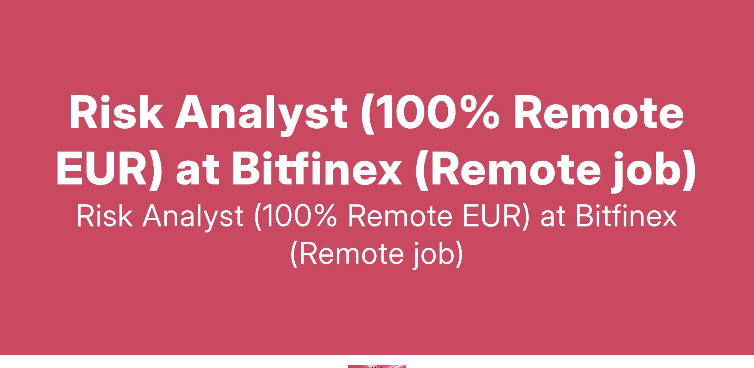 Risk Analyst (100% Remote EUR) at Bitfinex (Remote job)