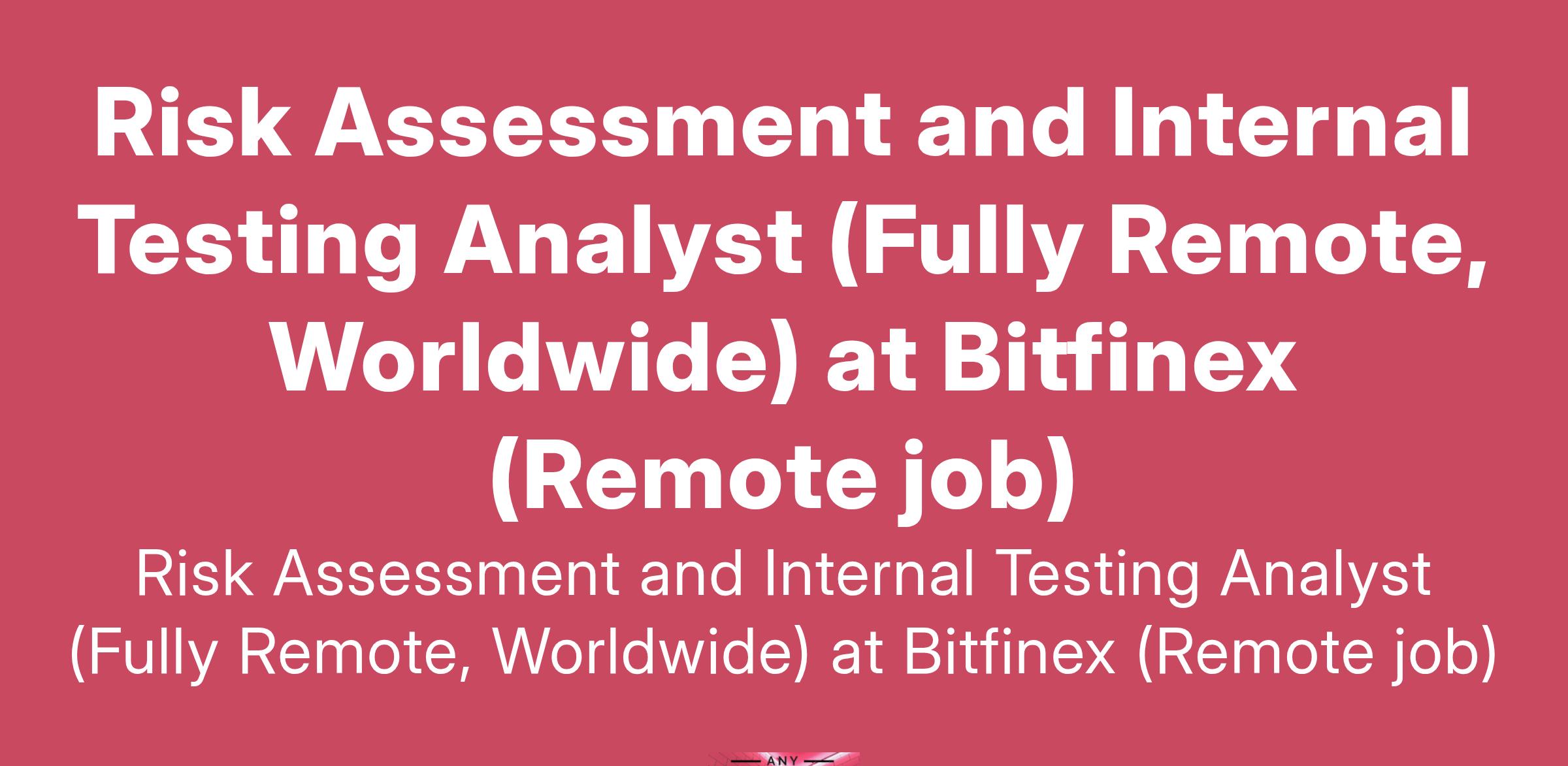 Risk Assessment and Internal Testing Analyst (Fully Remote, Worldwide) at Bitfinex (Remote job)