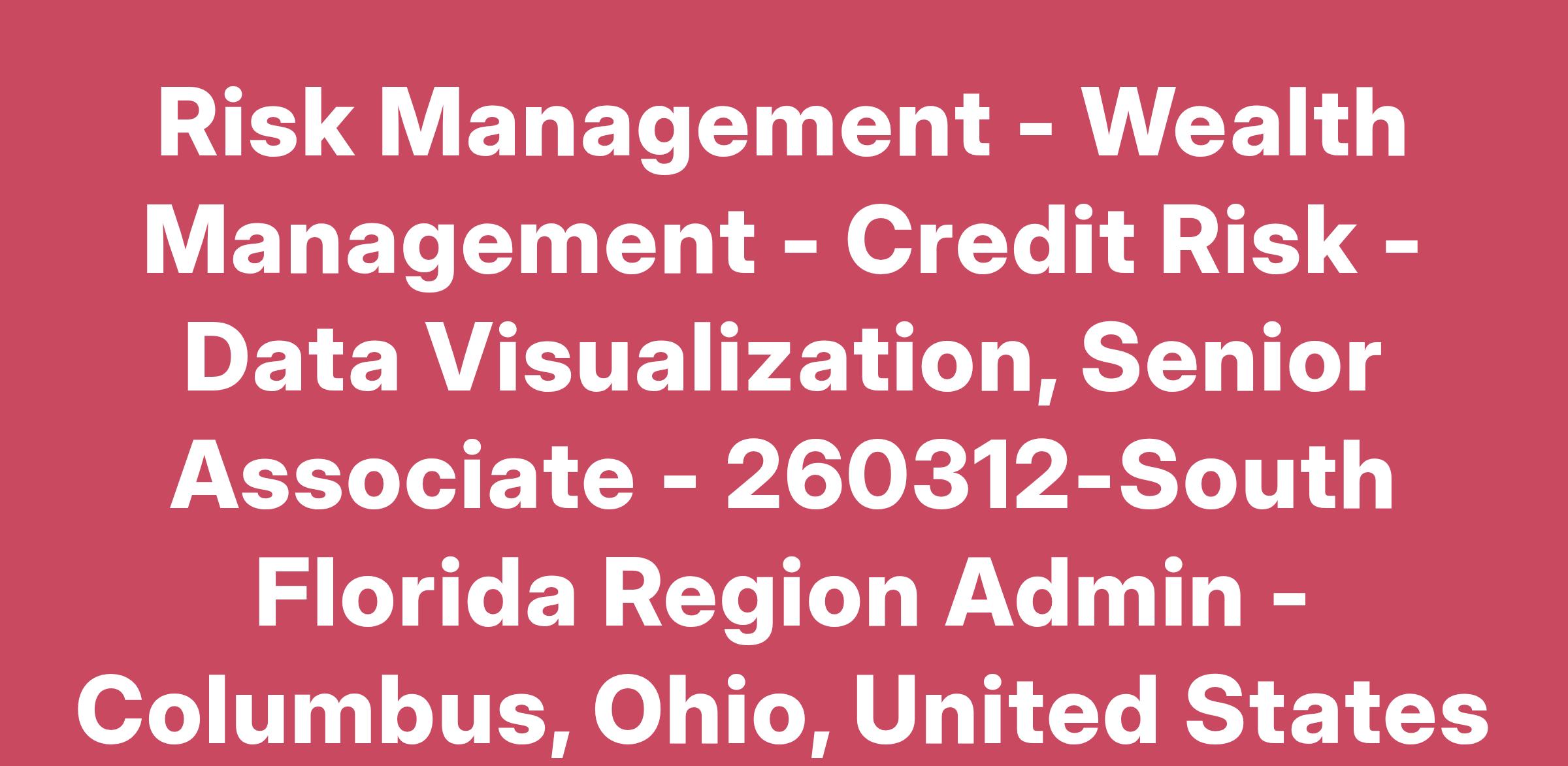 The Credit Risk Innovation & Analytics team is a global center of excellence with underwriting, technology, innovation, analytics and reporting responsibilities. The team works in conjunction with senior leaders in Lending Solutions, Collateral Risk Management, Credit Middle Office and Credit Risk to provide global solutions for a diverse portfolio of products and collateral types.