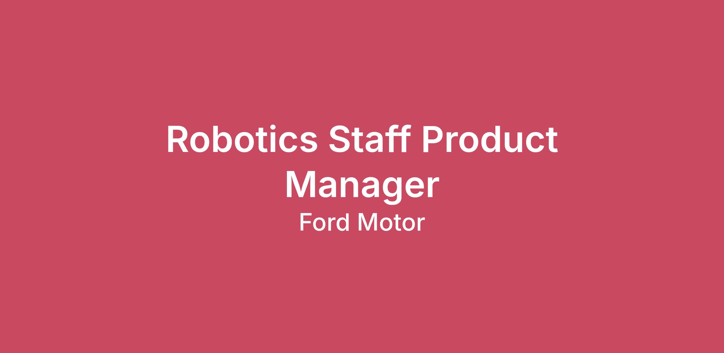DescriptionWe made history and now we work to transform the future – for our customers, our communities and our families. You'll see your work on the road every day, helping people move freely and pursue their dreams. At Ford, you can build more than vehicles. Come build what matters.As part of our Manufacturing team, you’ll help build the world-class, state-of-the-art smart vehicles we're known for. In our plants around the world, we’re constantly developing new technologies and processes to further increase our efficiency. You'll get the satisfaction of making great products people use and love. In this position...Ford’s Advanced Industrial Technology & Platforms (ATP) team is building scalable robotics products and platform capabilities to reimagine manufacturing across Ford. As a Staff Product Manager, Robotics, you will set product direction and drive delivery for robotics solutions from discovery through pilot and scale—leading through influence across engineering, manufacturing, safety, quality, IT, cybersecurity, and suppliers.ResponsibilitiesWhat you'll do...Set the product strategy and multi-release roadmap for ATP robotics, balancing immediate operational wins with platform scalability and long-term architecture.Lead discovery with plant and operations partners to identify high-value use cases; define personas, workflows, constraints, and measurable outcomes.Own the creation and quality of product requirements (PRDs, user stories, acceptance criteria), ensuring they span robotics behavior, integration, safety, and operational readiness.Drive cross-functional execution with engineering: prioritize backlogs, define MVP scope, manage tradeoffs, and deliver releases that perform in real industrial environments.Define and monitor product KPIs such as uptime/availability, MTTR, throughput and cycle-time impact, deployment lead time, safety incident reduction, and total cost of ownership.Lead pilot-to-scale planning: site selection, rollout playbooks, training, support model, and post-deployment iteration based on telemetry and operator feedback.Influence technical and business decisions across stakeholders—aligning on architecture choices, sourcing approaches, and operating model (support, monitoring, maintenance).Partner with Purchasing and suppliers to evaluate solutions and shape vendor roadmaps; establish clear performance expectations and accountability mechanisms.Create a forward path for platform evolution (e.g., vision-guided navigation) while ensuring today’s decisions don’t block tomorrow’s capabilities.QualificationsYou'll have...Bachelor’s degree or equivalent experience.8+ years of experience in product management and/or technical delivery for complex technical products (hardware/software/system + operational deployment).Demonstrated ability to lead and align cross-functional teams at scale, driving decisions and outcomes through influence.Strong requirements and execution discipline: ability to translate ambiguous problems into crisp scope, measurable success criteria, and release plans.Experience using data and operational feedback to prioritize, iterate, and improve product performance over time.Excellent communication skills with the ability to engage effectively with both executive stakeholders and engineering teams. Even better, you may have...Experience delivering robotics systems in real-world deployments (e.g., AMRs/AGVs, robotics navigation, fleet management, autonomy behaviors, HMI/operator workflows, teleoperation, cobotics, etc.,).Experience taking products from discovery to prototype to pilot to scaled rollout across multiple sites, including change management and operational readiness.Familiarity with robotics platform concepts: localization/mapping, motion planning, safety behaviors, teleoperation, fleet orchestration, edge compute, and industrial networking/integration.Strong understanding of reliability/serviceability practices (telemetry, failure modes, spares strategy, maintainability, support playbooks).Experience with industrial safety processes and standards practices (risk assessments, safe operating procedures, change control).Vendor/supplier management experience (RFx support, supplier scorecards, roadmap alignment, performance management).MBA or Master’s degree in engineering, robotics, computer science, or a related field. THIS IS NOT A REMOTE ROLE. YOU WILL BE REQUIRED TO BE IN S.E. MI 4/5 DAYS/WEEK. You may not check every box, or your experience may look a little different from what we've outlined, but if you think you can bring value to Ford Motor Company, we encourage you to apply!As an established global company, we offer the benefit of choice. You can choose what your Ford future will look like: will your story span the globe, or keep you close to home? Will your career be a deep dive into what you love, or a series of new teams and new skills? Will you be a leader, a changemaker, a technical expert, a culture builder…or all of the above? No matter what you choose, we offer a work life that works for you, including:• Immediate medical, dental, vision and prescription drug coverage• Flexible family care days, paid parental leave, new parent ramp-up programs, subsidized back-up child care and more• Family building benefits including adoption and surrogacy expense reimbursement, fertility treatments, and more• Vehicle discount program for employees and family members and management leases• Tuition assistance• Established and active employee resource groups• Paid time off for individual and team community service• A generous schedule of paid holidays, including the week between Christmas and New Year’s Day• Paid time off and the option to purchase additional vacation time. This position is leadership level 6 and ranges from $129,600-244,680.Final determination of salary grade will be based on candidate's skills and experience, and base salary will be set within the applicable range according to j