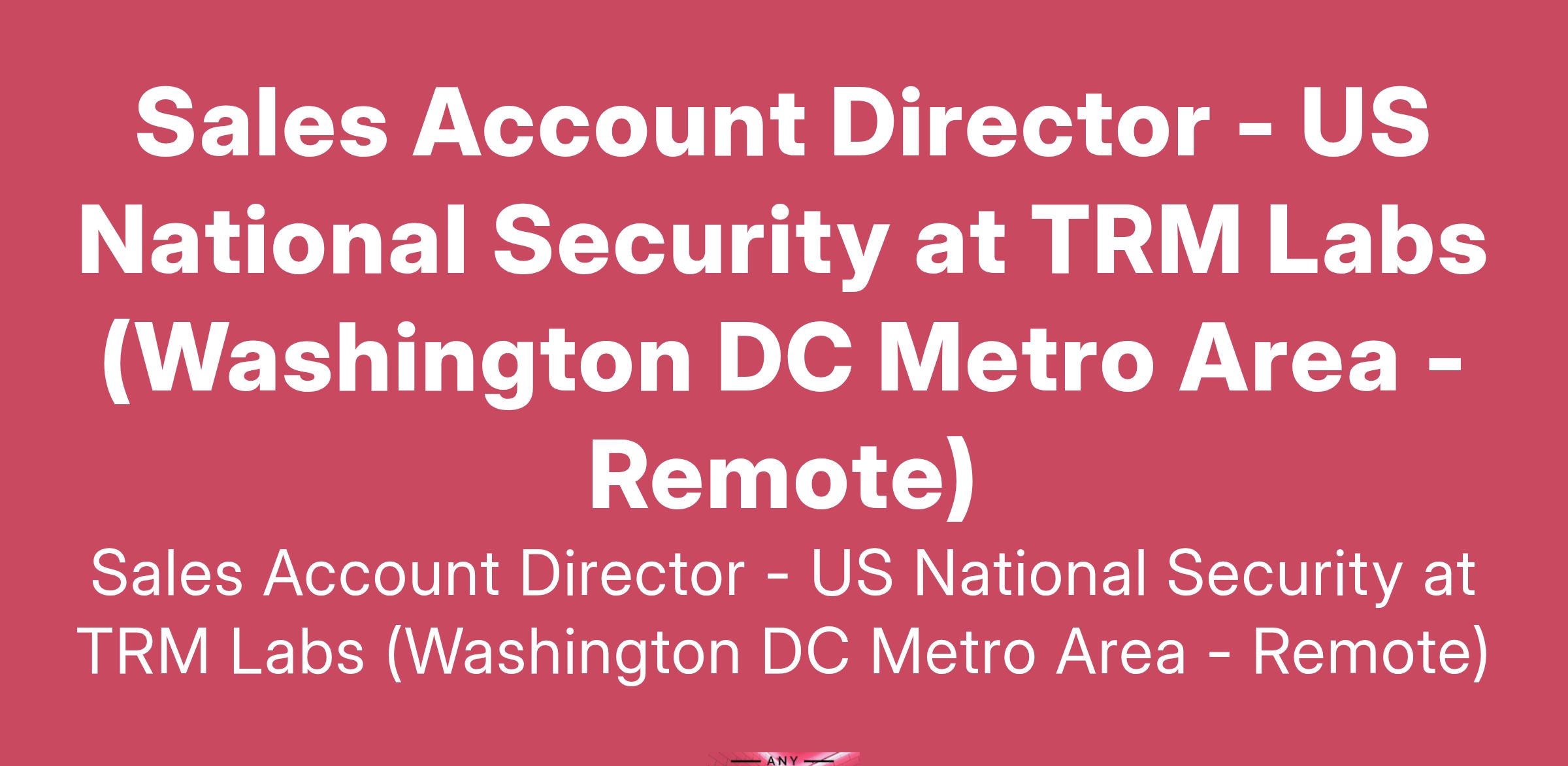 Sales Account Director - US National Security at TRM Labs (Washington DC Metro Area - Remote)