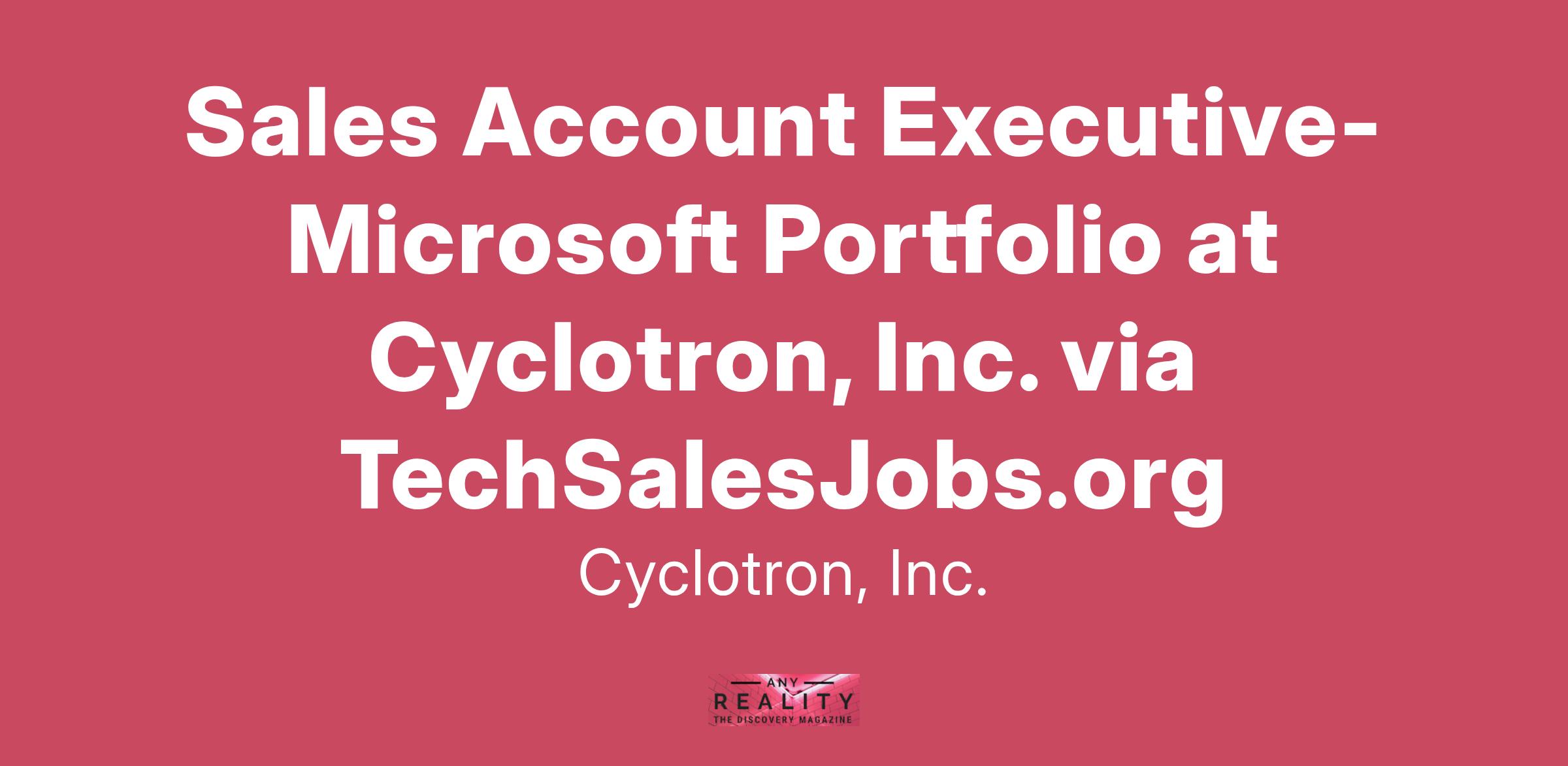 Cyclotron is looking for an experienced, motivated, entrepreneurial Sales Account Executive experienced with the Microsoft Portfolio to join our ever-expanding US national Sales Team. The Account Executive is responsible for all sales activities from lead generation through close in assigned territory. Strong skills and experience in Services, Software sales, and account management are required. You will also be considered for the role if you have Sales Engineering experience. You will own the development of business in your Region, so you need to be entrepreneurial and self-directed. Responsibilities Create and manage territory sales business plans Independently manage assigned sales territory Effectively prospect, qualify, develop, and close new business opportunities Demonstrate effective sales strategy to manage sales cycle across prospects and service offerings, with ability to close deals within target timeline Independently drive business conversations with business influencers and decision makers Identify opportunities to up-sell and cross-sell services to expand account focused services landscape Selling consultatively with the ability to assimilate customer needs and identify recommended services Develop and maintain relationships with external partners to drive co-selling opportunities Qualifications 5+ years of dedicated experience as a Software, Solution Sales, or Account Executive Demonstrated goal attainment track record over plan year Experience selling Microsoft Software or Services, or similar Enterprise Software Solutions Sales knowledge of Microsoft Solutions (Microsoft 365, Azure, and/or Dynamics 365) Experience leveraging CRM Software for daily account management activities Critical thinker and independent problem-solver who can work on their own Cyclotron Culture Hunger, humbleness, and smartness define us. We have grown exponentially because we hire the best talent and provide them with opportunities to reach their full potential. That is why we have crafted a lot of entrepreneurial, competitive, and transparent employees, who love what they do. We are approachable, action-oriented, and committed to tangible results from day one. We offer exciting benefits! Unparalleled company culture Competitive salary 100% Remote Full benefits including medical, dental, and vision Unlimited PTO 401K with Company Match We are an equal opportunity employer; we encourage diversity and promote an inclusive environment where everyone feels respected and valued. All applicants will be considered for employment without attention to race, color, religion, sex, sexual orientation, gender identity, gender expression, age, marital status, religion, national origin, veteran, or disability status. We would love to learn about what you can add to our diverse team. Cyclotron is an Equal Opportunity Employer. Cyclotron values diversity, equity, and inclusion, and aims to practice DE&I in all that we do.