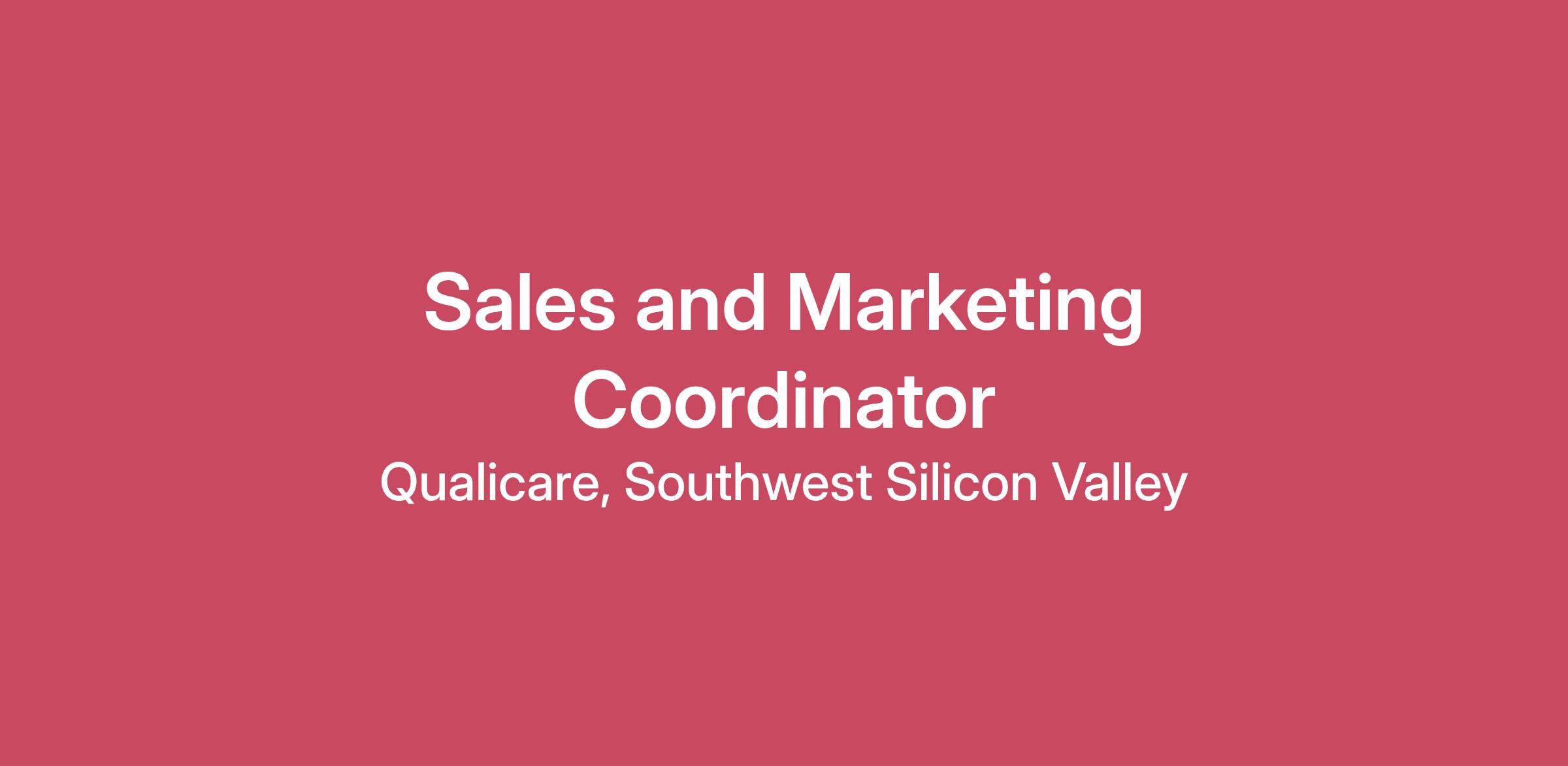 Benefits: Bonus based on performance Competitive salary Flexible schedule Training & development Tuition assistance Benefits/Perks Part-time, Flexible hours expanding to Full-time  Competitive Wages Continuing education programs Making a difference in the lives of those dealing with medical illnesses and age-related complications Career Advancement potential Commission-based opportunities Free education and training with QPath Career Pathways Program Company OverviewQualicare Homecare Southwest Silicon Valley is looking for compassionate, caring, and reliable individuals to join our family as Sales and Marketing Coordinators. Qualicare location offers home care services that focus on providing the best quality of life for our clients and peace of mind for their families. Job SummaryReporting to the CEO, the Sales and Marketing Coordinator is responsible for the business development of the agency by networking and connecting with healthcare facilities, physicians, clinics, and eldercare facilities to generate sales referrals for home care solutions. She/he will coordinate and manage sales within a defined geographic area and ensure consistent, profitable growth in sales revenues through assessing, planning, implementing, and evaluating local marketing & business opportunities.  Initially, this is a part-time position with flexible hours, but can grow to full-time over summer 2026.   Responsibilities  Develops a sales and marketing plan  Plans and creates business development opportunities  Follows the Qualicare sales system to promote Qualicare services Establishes working rapport with health care professionals and potential referral sources within a designated territory  Identifies new business opportunities and creates and builds proposals  Manages sales accounts and meets financial targets with respect to sales and business development opportunities  Participates in opportunities to increase social media activity and effectiveness  Qualifications Computer proficiency - Excel, Word, PowerPoint, (or G-Suite), CRM databases Familiarity with social media platforms  Has a vehicle with a valid driver’s license and car insurance  Strong time management and planning skills  Strong interpersonal and presentation skills  Detail oriented  Work remote temporarily due to COVID-19.