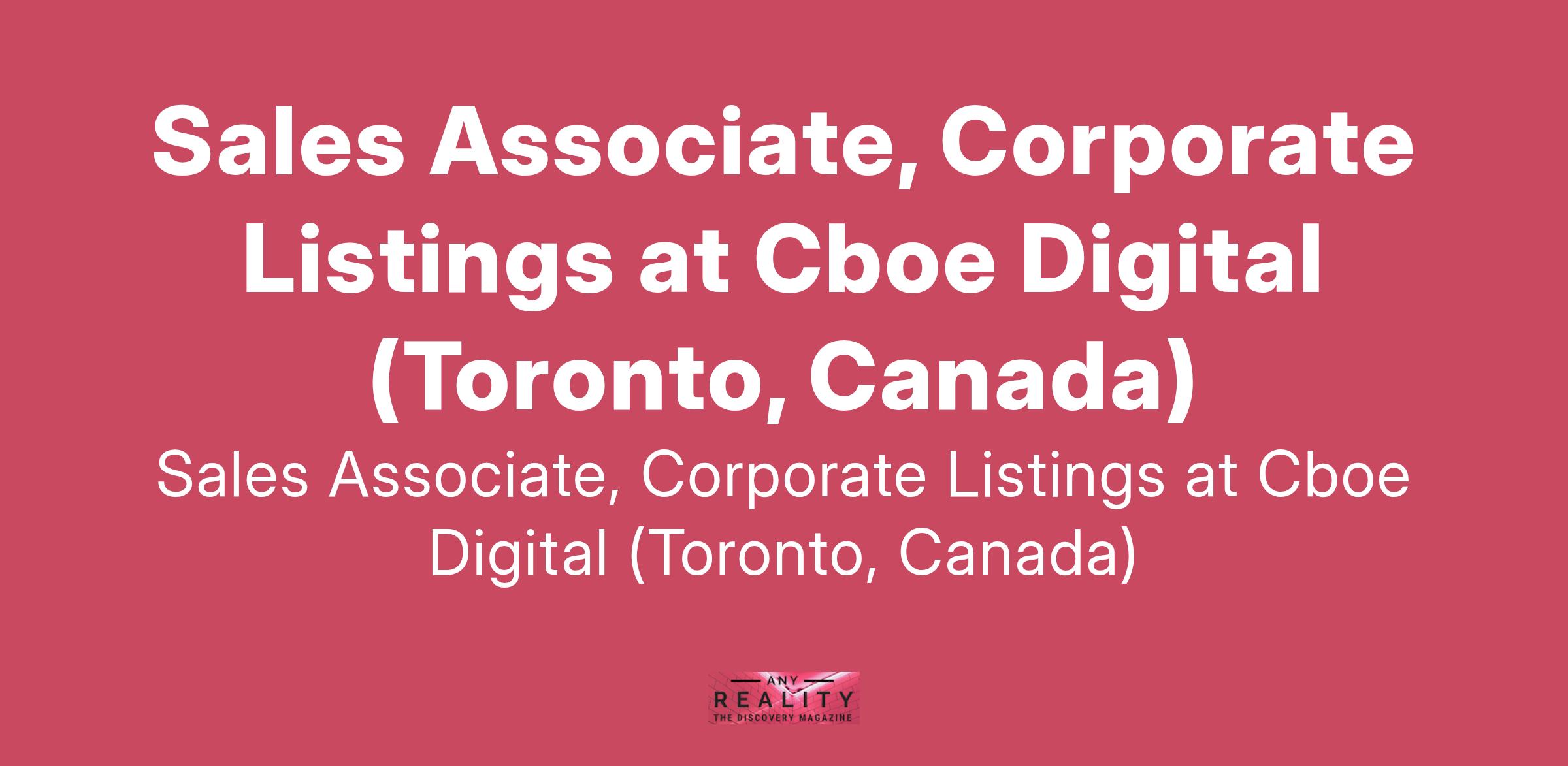 Sales Associate, Corporate Listings at Cboe Digital (Toronto, Canada)