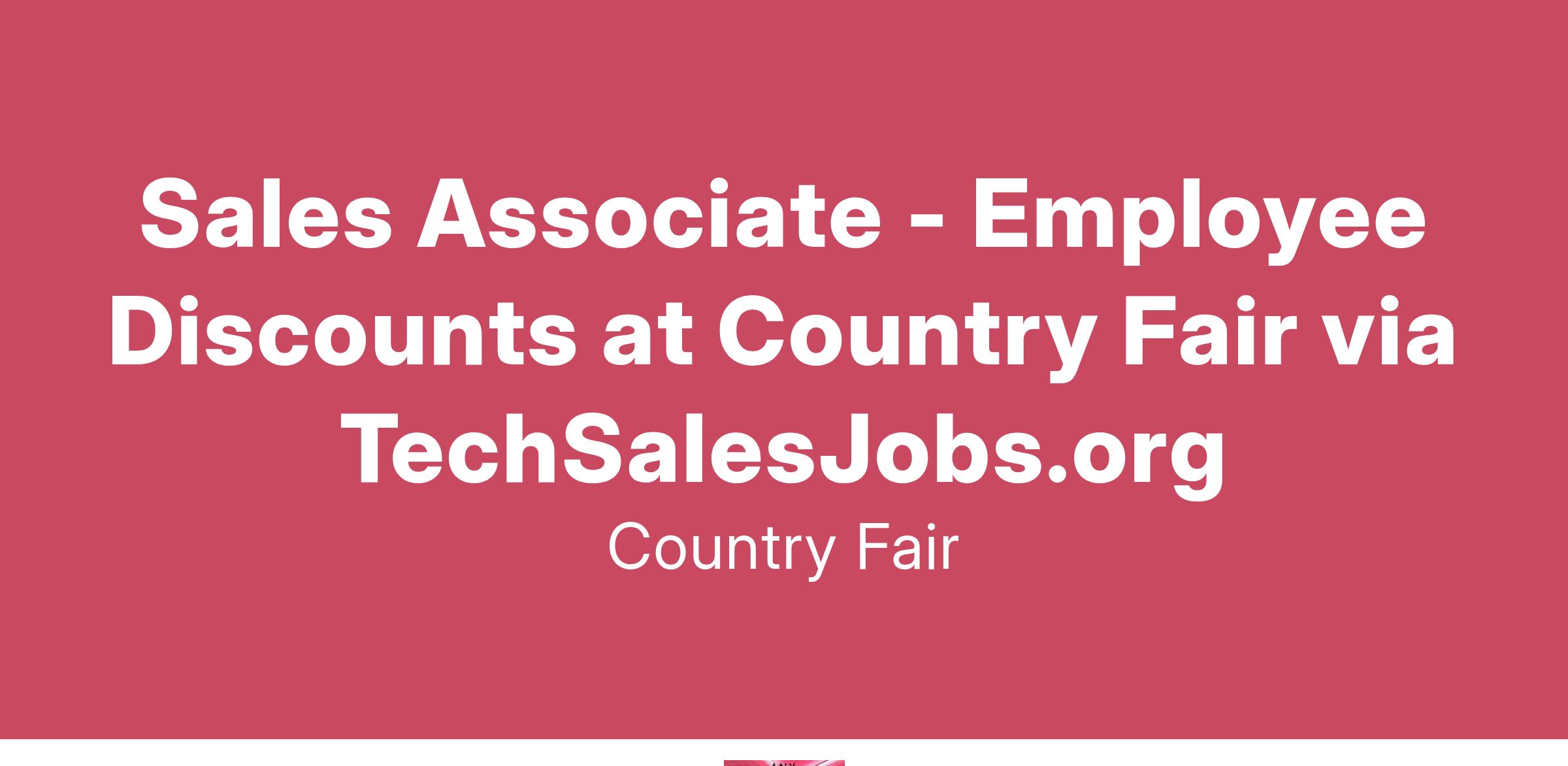 Sales Associate - Employee Discounts at Country Fair via TechSalesJobs.org