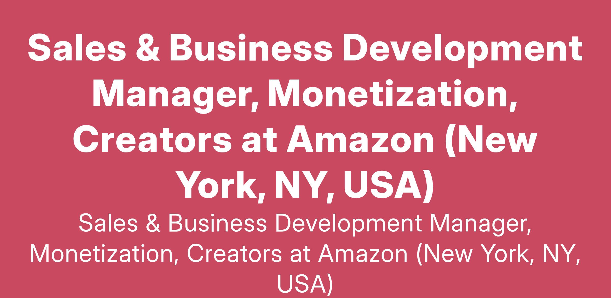 Sales & Business Development Manager, Monetization, Creators at Amazon (New York, NY, USA)
