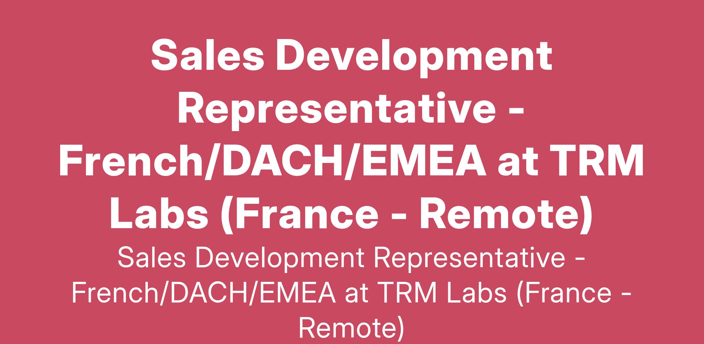 Sales Development Representative - French/DACH/EMEA at TRM Labs (France - Remote)